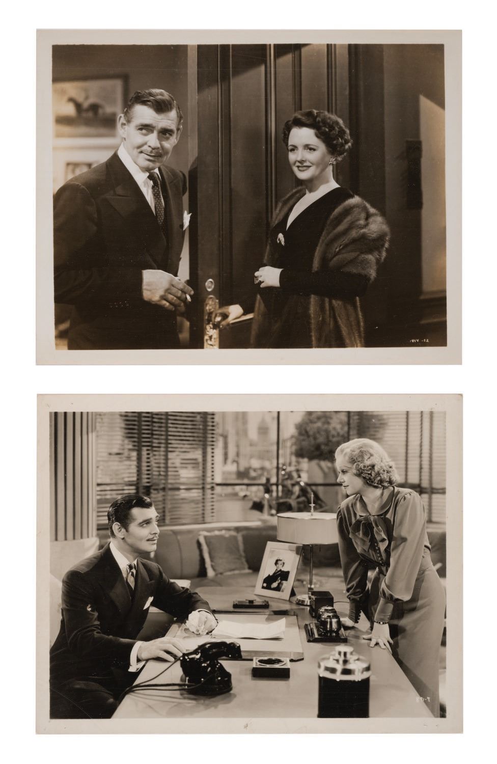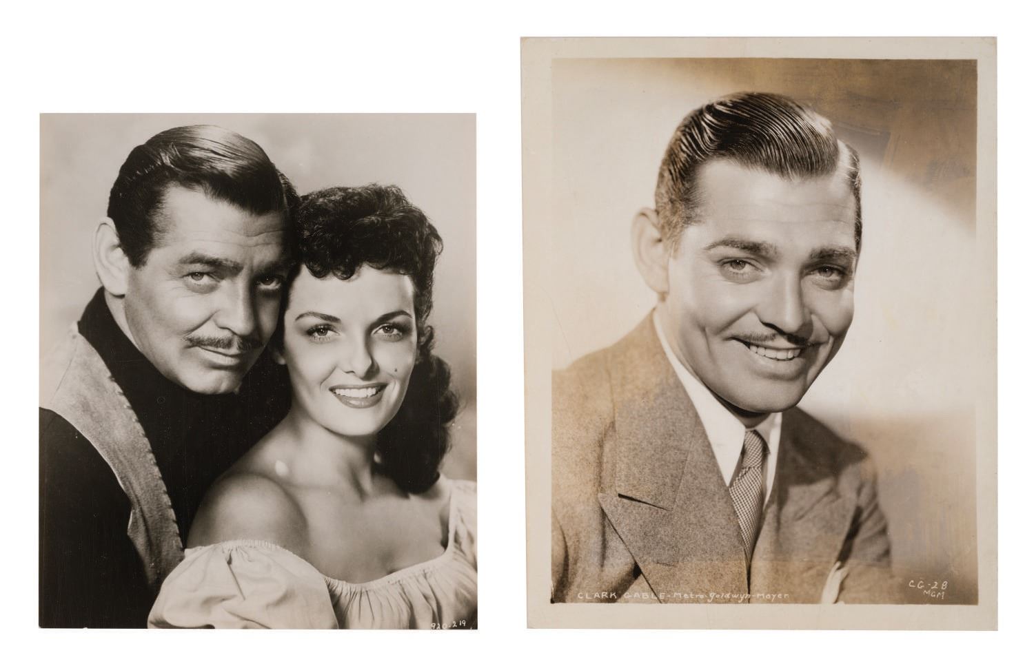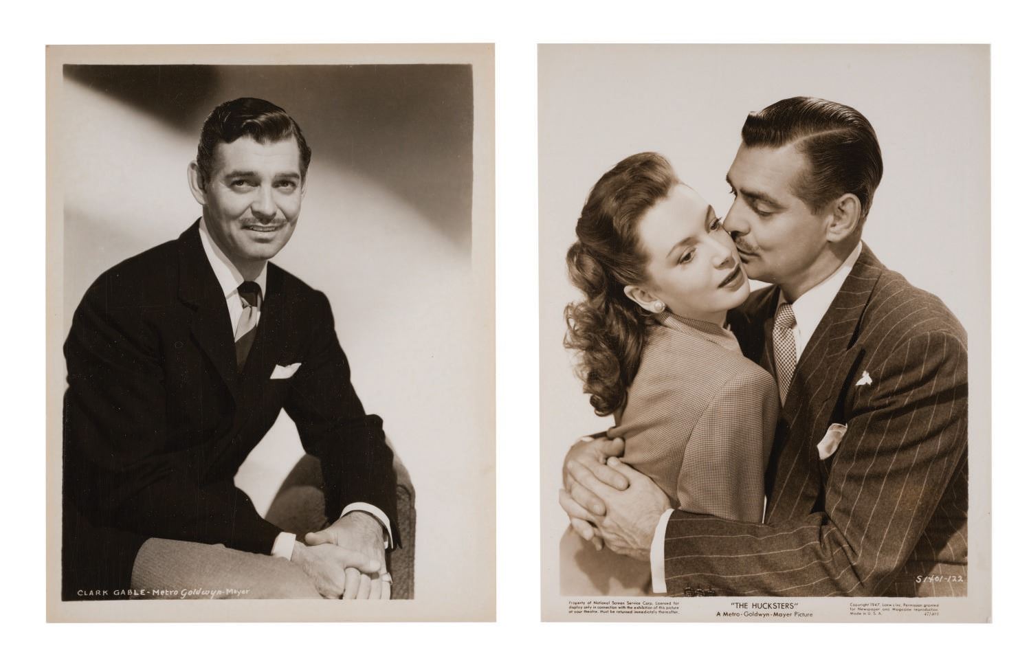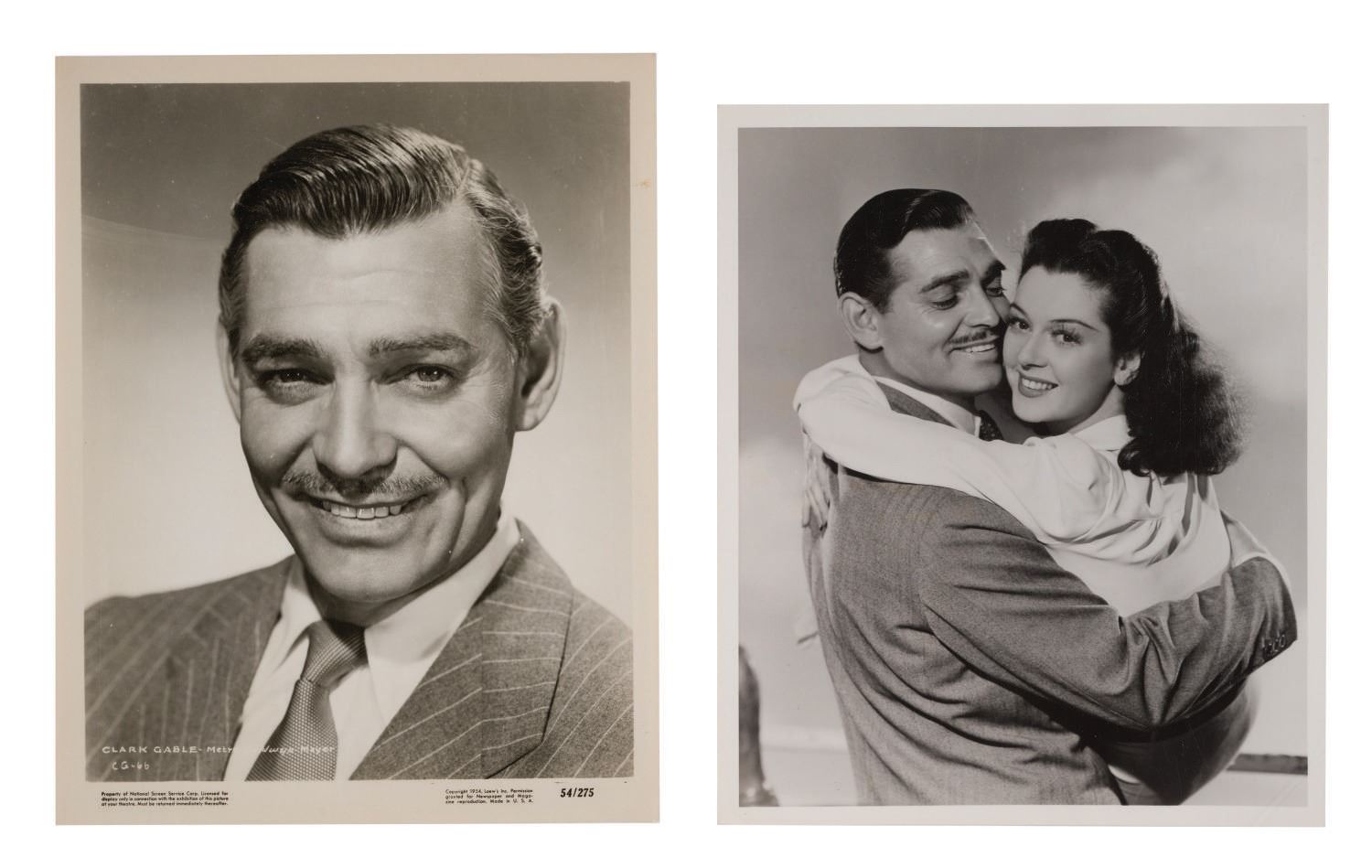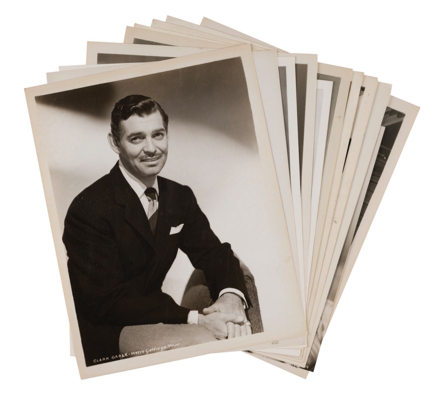 (MGM, 1930s-50s) A collection of (12) photos of Clark Gable. Among the lot are various still images spanning three decades of his career. Measuring 8"x10.25", the photos are in very good overall condition, despite few slight scuffs and wear to some edges and corners.