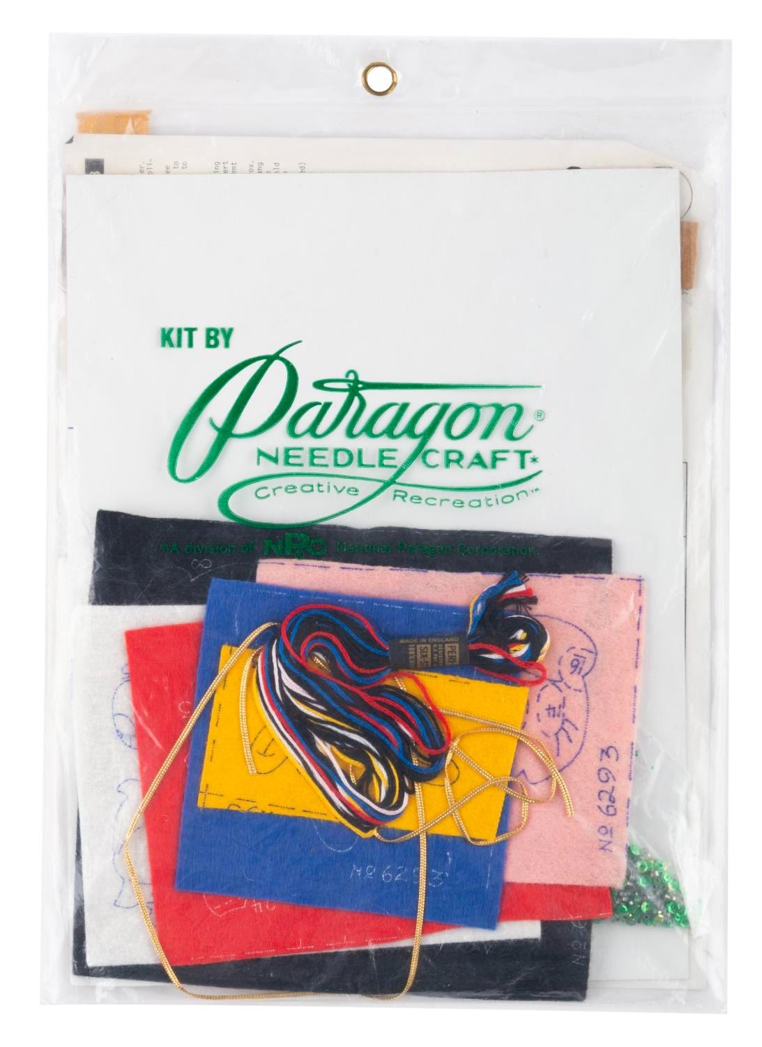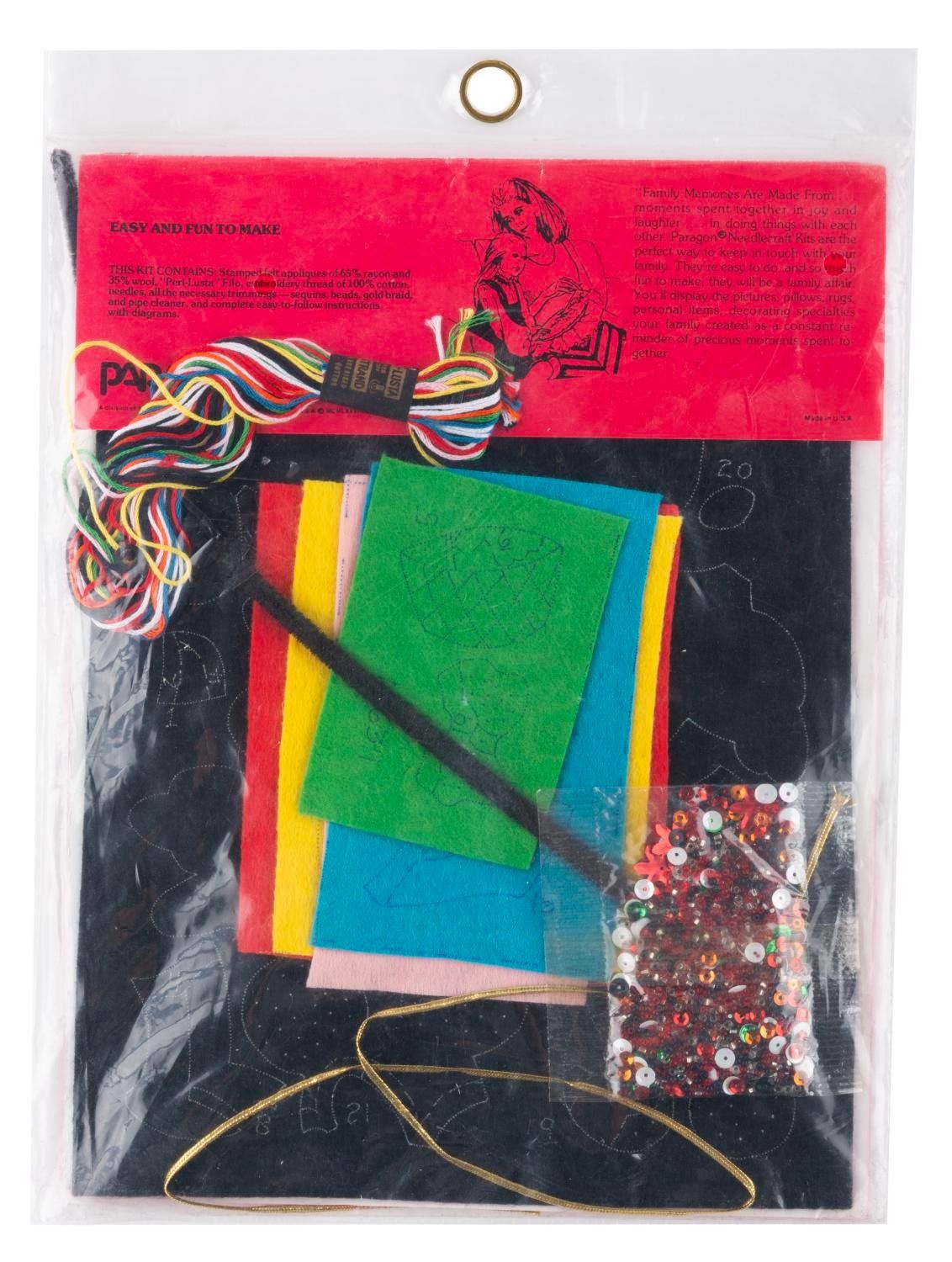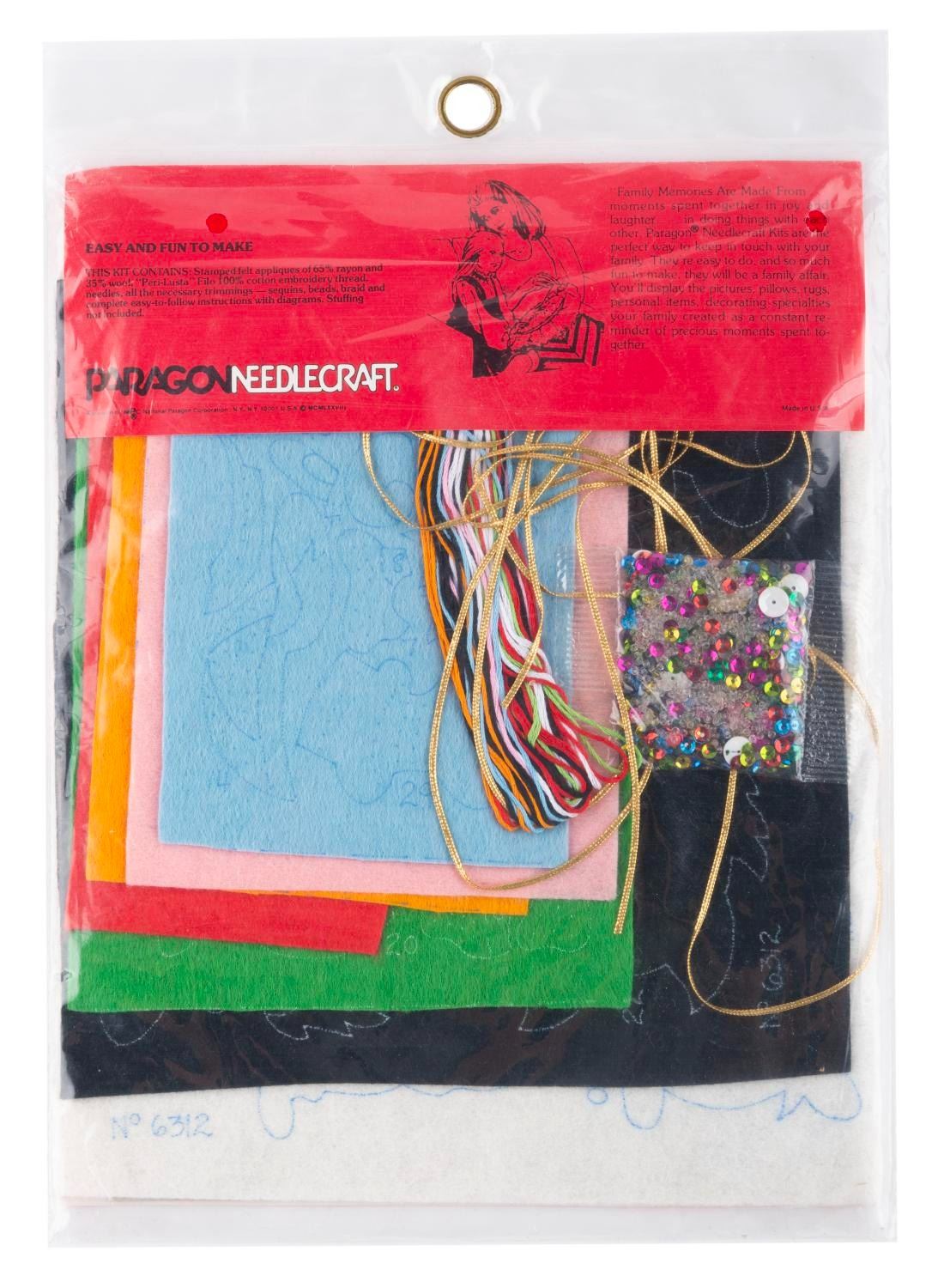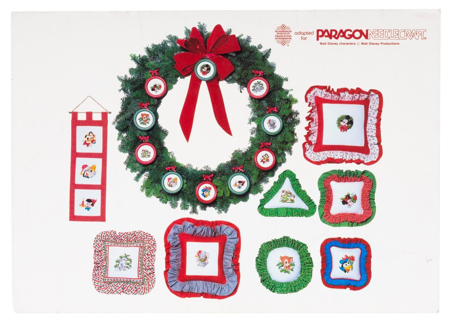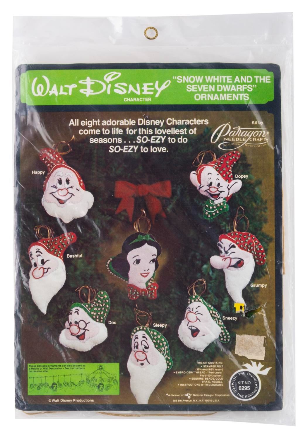 (Paragon, 1970s-80s) A collection of four Needlecraft Disney ornament kits, with all the materials needed to create fun plush character ornaments. Also included is a set of Disney character cross-stitch patterns. The kits are in fine, unopened condition, with light wear from age.