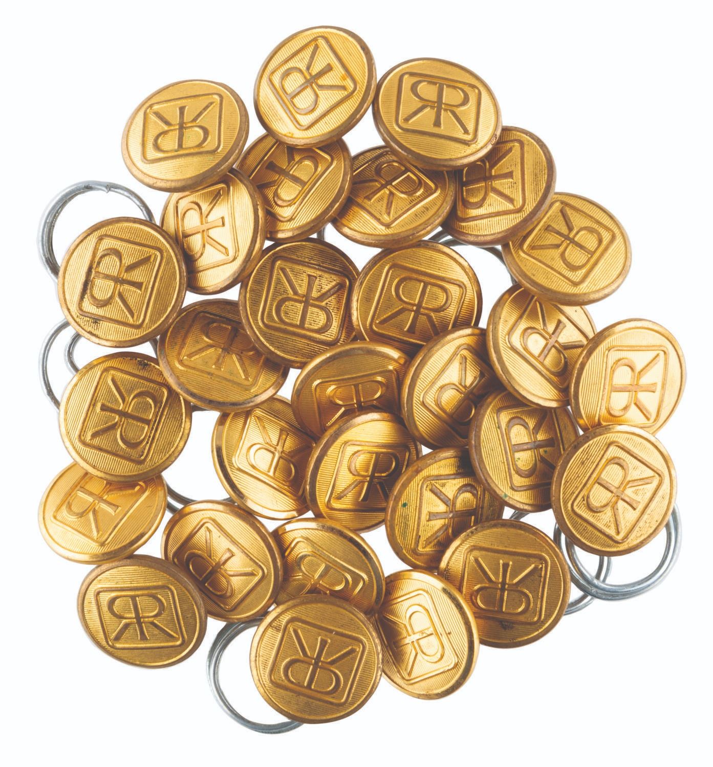 (Disneyland, 1960s-82) A collection of 29 rare costume buttons for Cast Members working on the Disneyland Railroad during its time under Retlaw Enterprises' ownership. Retlaw Enterprises, which is "Walter" spelled backwards, was founded by Walt Disney to manage the theme park attractions he personally owned. These buttons feature the Retlaw logo, measure 0.5" in diameter each, and display in good to fine condition with light tarnish.