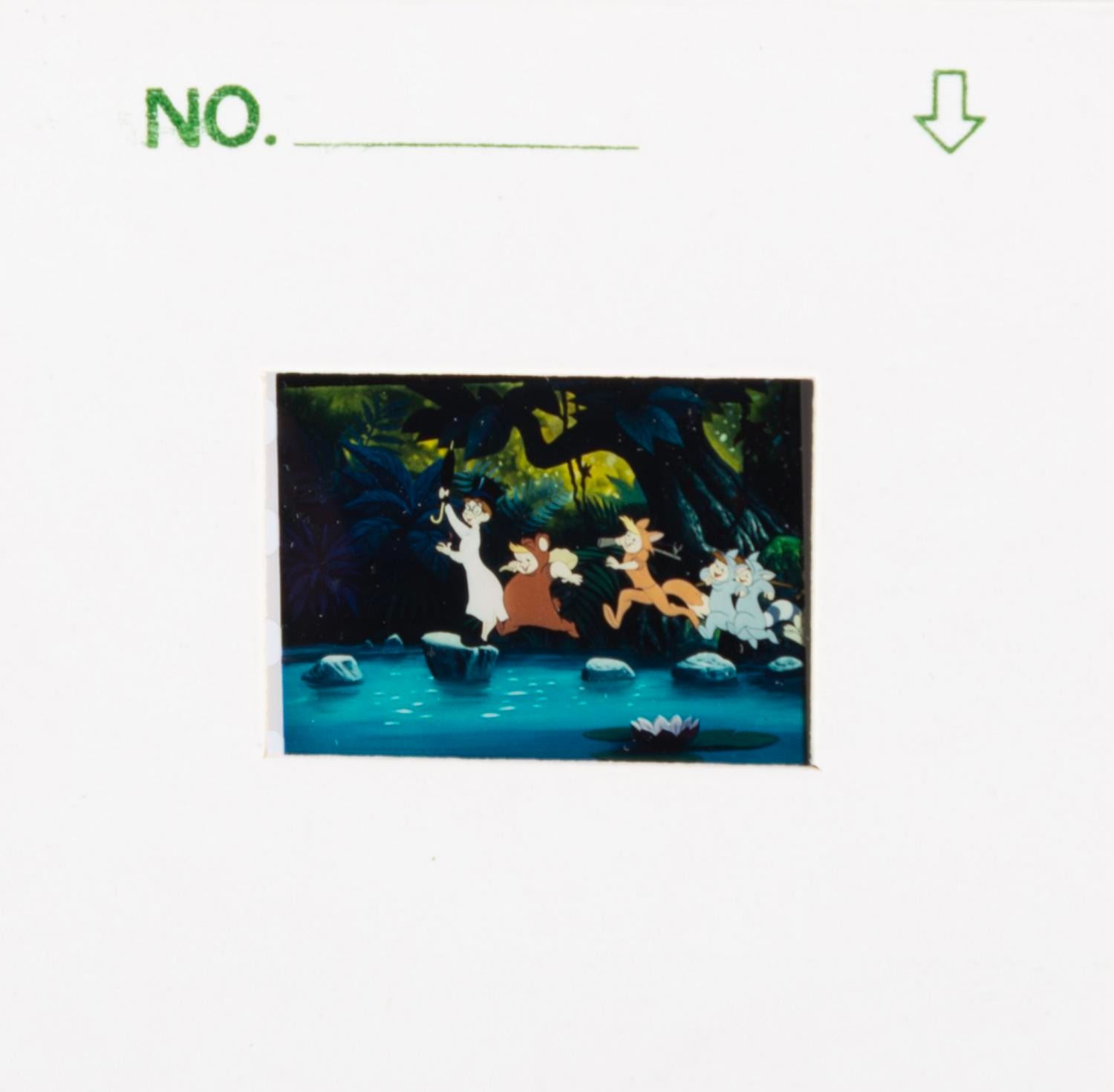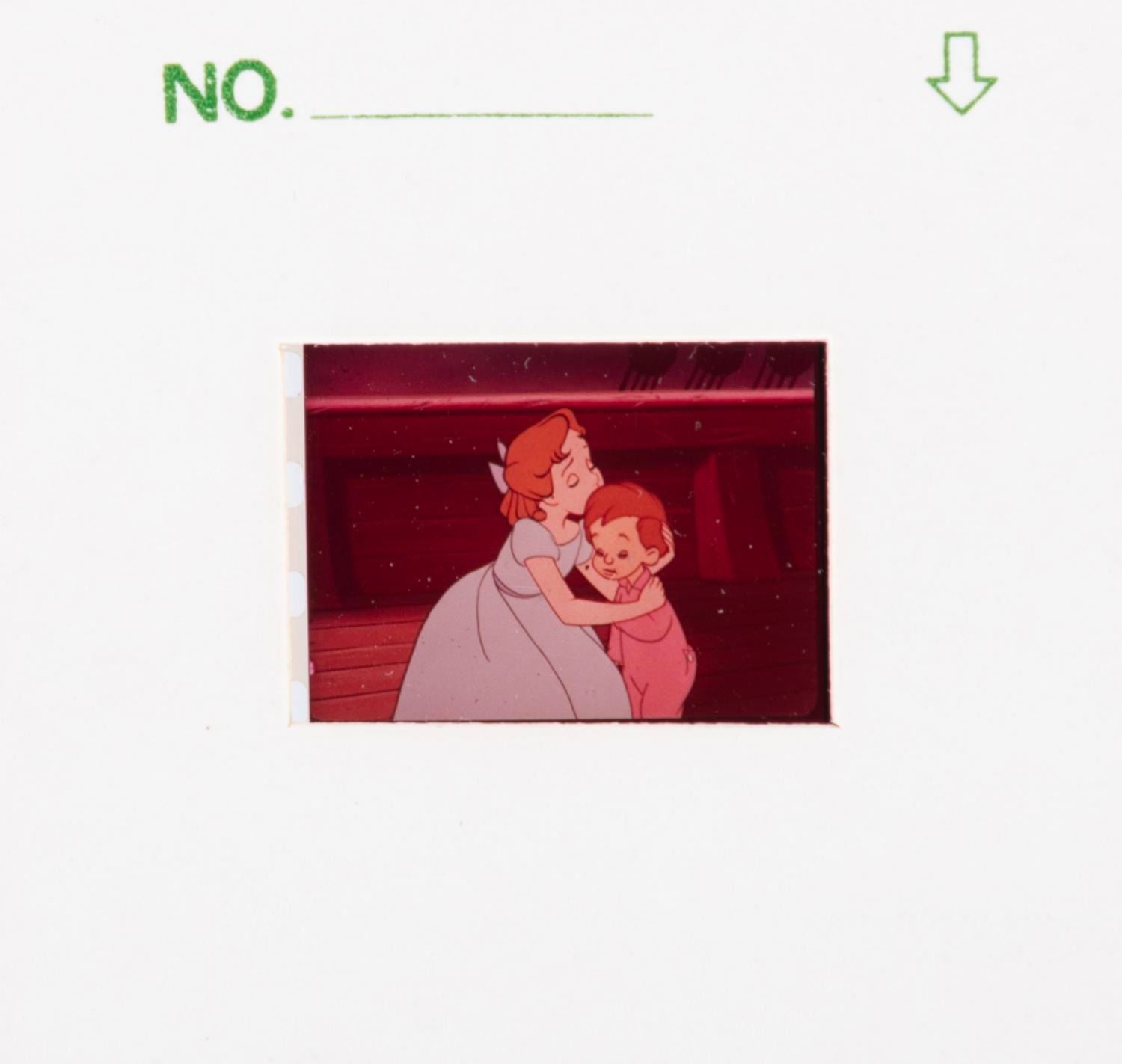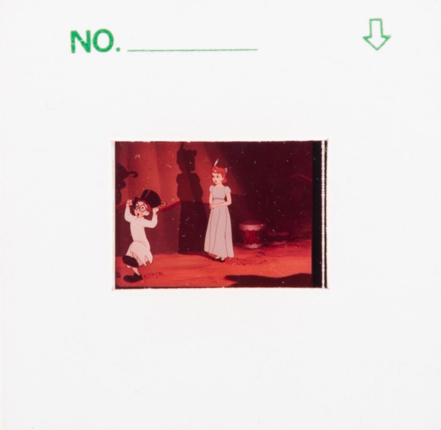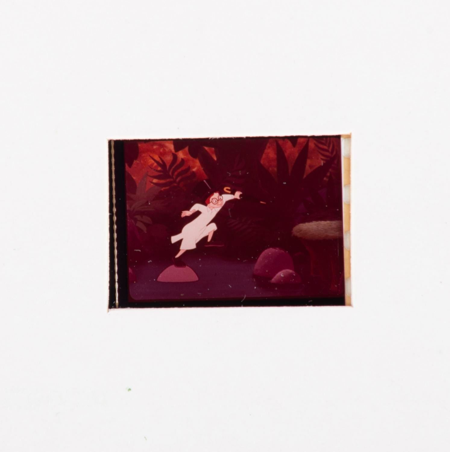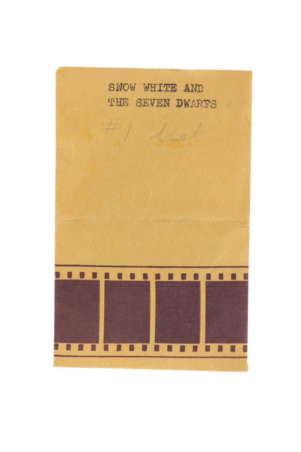 (Disney) A collection of several hundred 35mm film frames clipped directly from prints of Disney classic animated films. Included are frames from "Snow White and the Seven Dwarfs," "Dumbo," "Cinderella," "Peter Pan," "Lady and the Tramp," and "Mary Poppins," each sorted into envelopes, with approximately 200 select images in slide mounts. Measuring 20mm x 35mm, the frames appear to be in very good condition with few signs of scratching or wear.