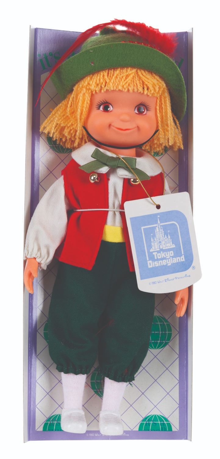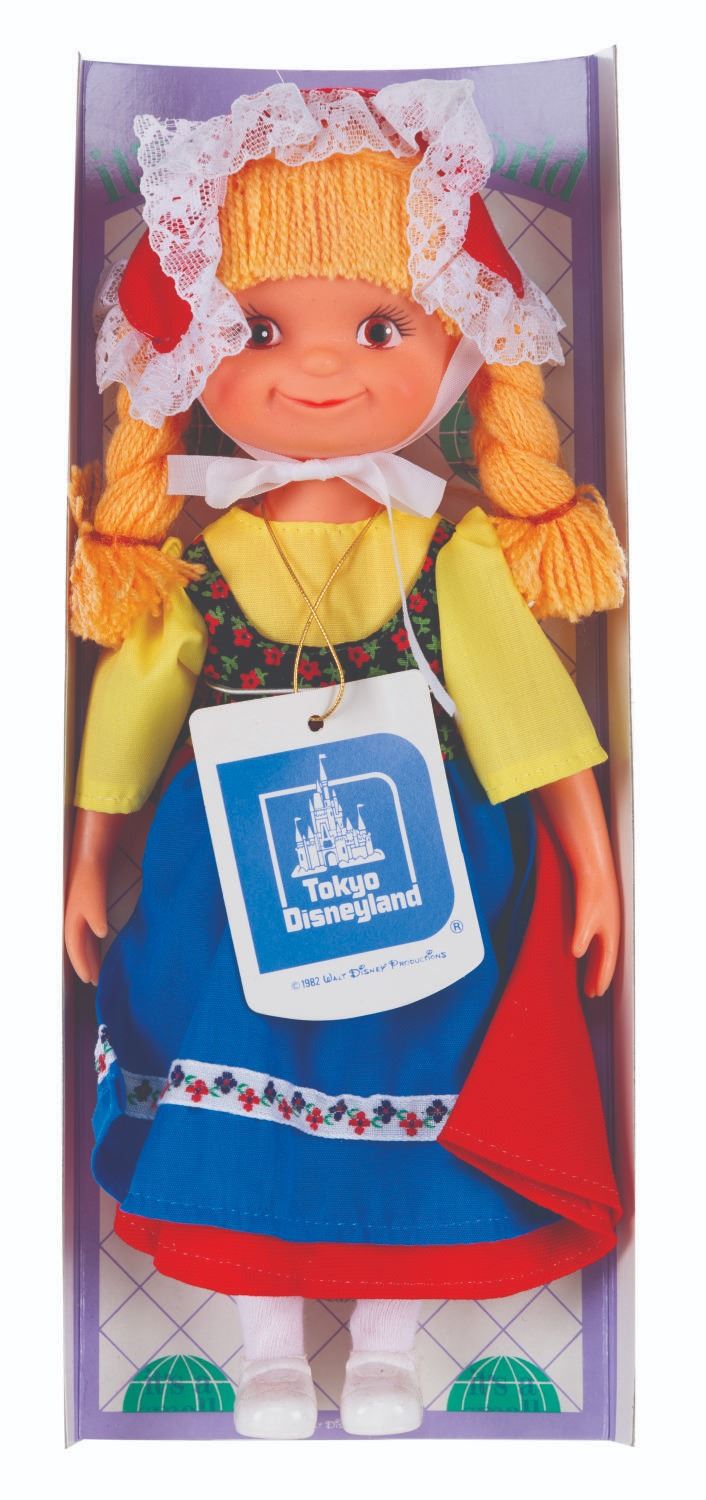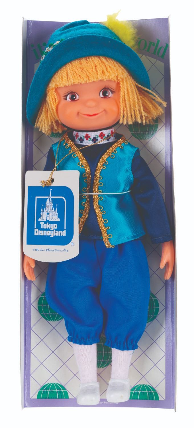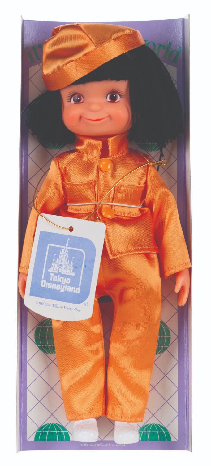 (Tokyo Disneyland, 1982-83) A collection of 16 souvenir dolls from It's A Small World at Tokyo Disneyland. Each doll features unique international clothing inspired by the popular attraction and was manufactured exclusively for Tokyo Disneyland. Measuring approximately 10" tall, each doll is in fine condition in its very good condition box with minor wear to the edges and corners, and retaining their original "price seal" tags.