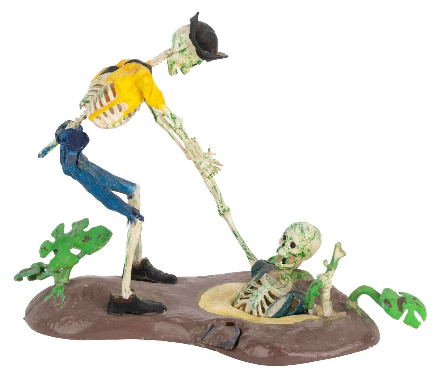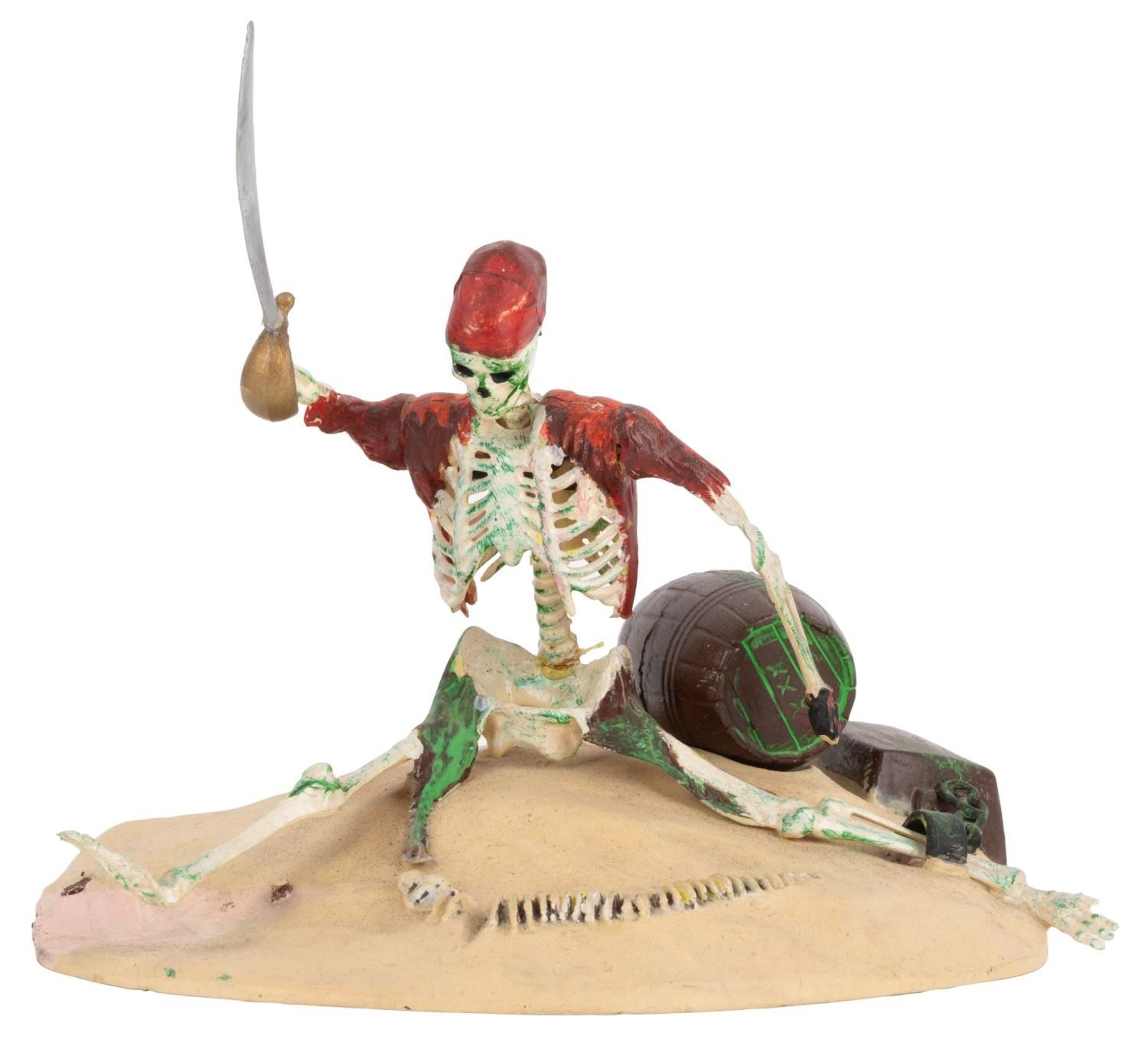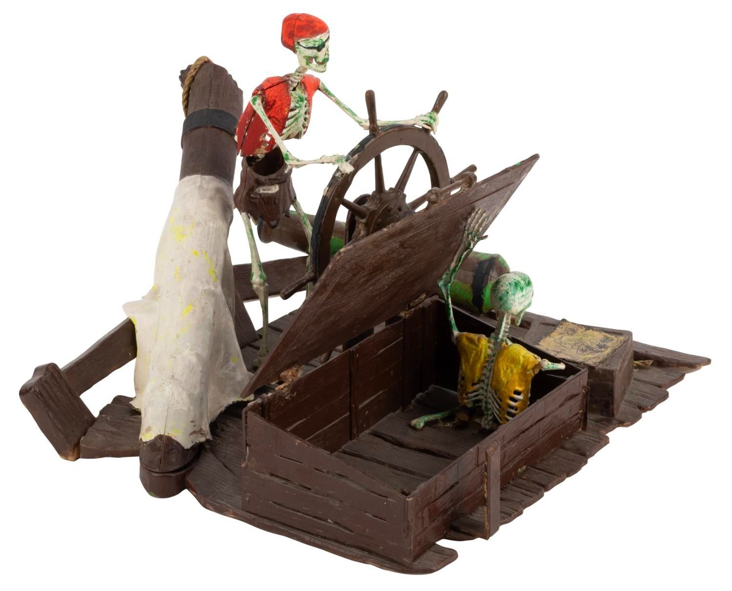 (MPC, 1972) A collection of four assembled MPC Pirates of the Caribbean models. Included are"Dead Men Tell No Tales,""Fate of the Mutineers,""Dead Man’s Raft," and"Condemned to Chains Forever." These kits are partially and aggressively painted, and glued such that the"zap/action" features will not work. The kits are in fair to good condition, likely missing pieces.