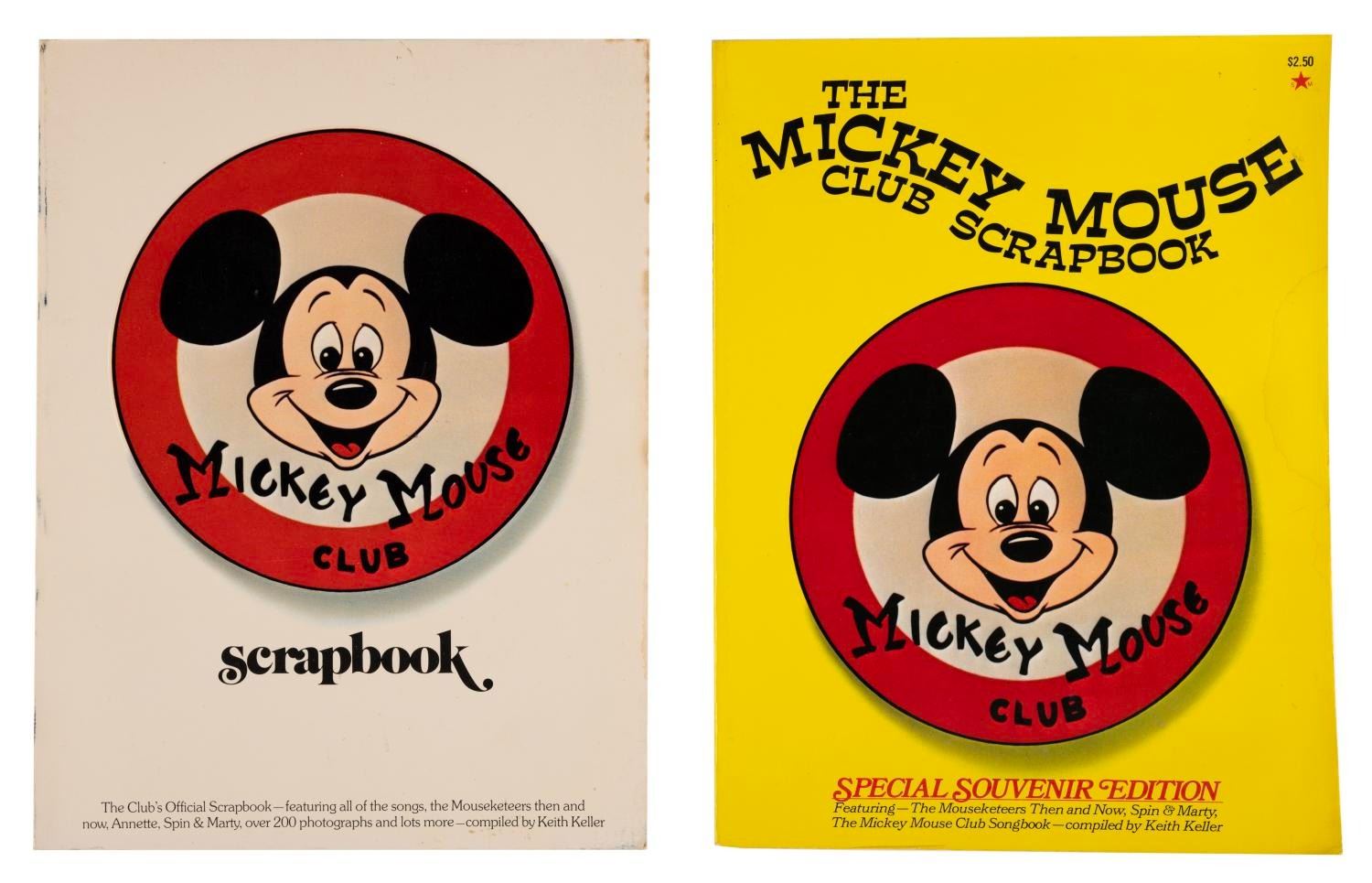(Western Publishing/Grosset & Dunlap, 1975-77) A collection of Mickey Mouse Club books including the Golden Shape book from 1977, the Scrapbook from 1975, and the Special Souvenir Edition Scrapbook from 1976. Measuring from 8" x 8" to 8" x 10.75", the books are in good to very good condition, with the scuffing and edge wear to the cover of the scrapbook, and slight water damage and wear to the Special Souvenir Edition's cover and last few pages.