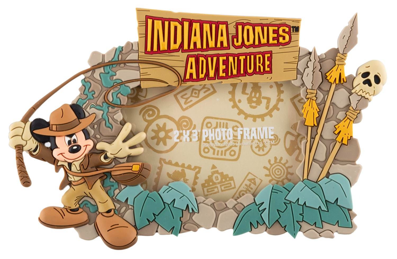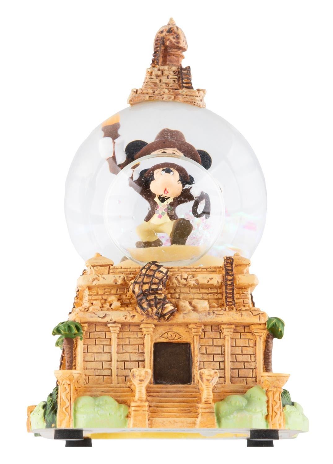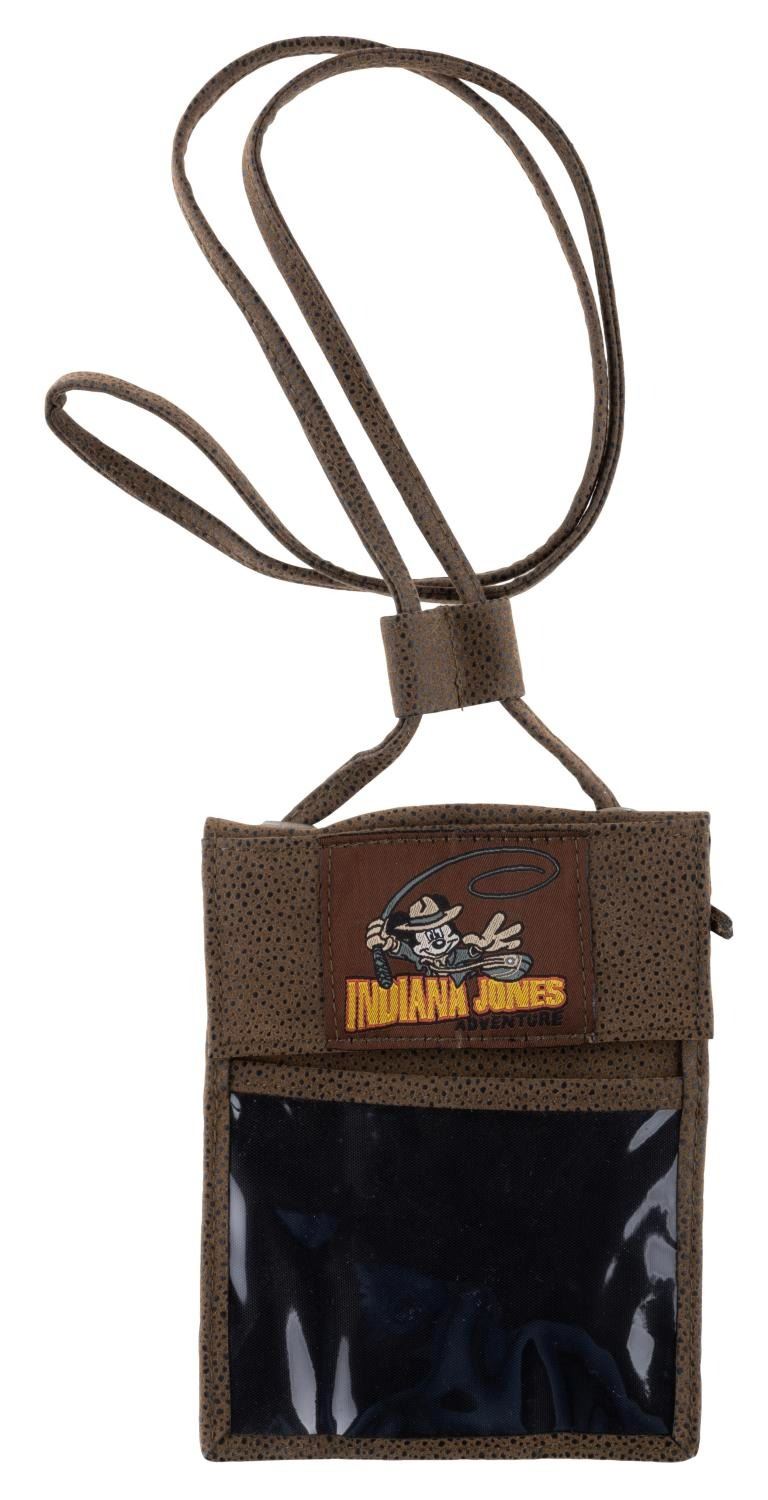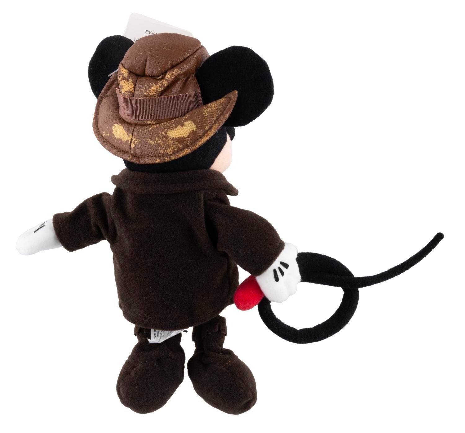 (Disneyland, 2003-2008) A collection of nine souvenirs featuring Mickey Mouse as Indiana Jones. Included are a bean bag toy, two baseballs, an opened and unopened magic towel, a 2” x 3” photo frame, a satchel, a lanyard wallet, and a small snow globe. Ranging in size from the 2” x 2” x 1” tall unopened magic towel to the 8.25” x 12” satchel, the lot is in good to very good condition with light scratches, stains, wear, and heavy peeling to the bean bag Mickey’s hat.