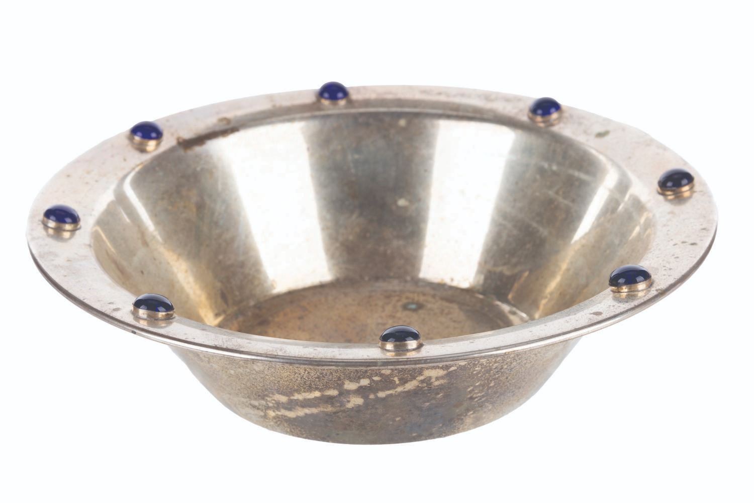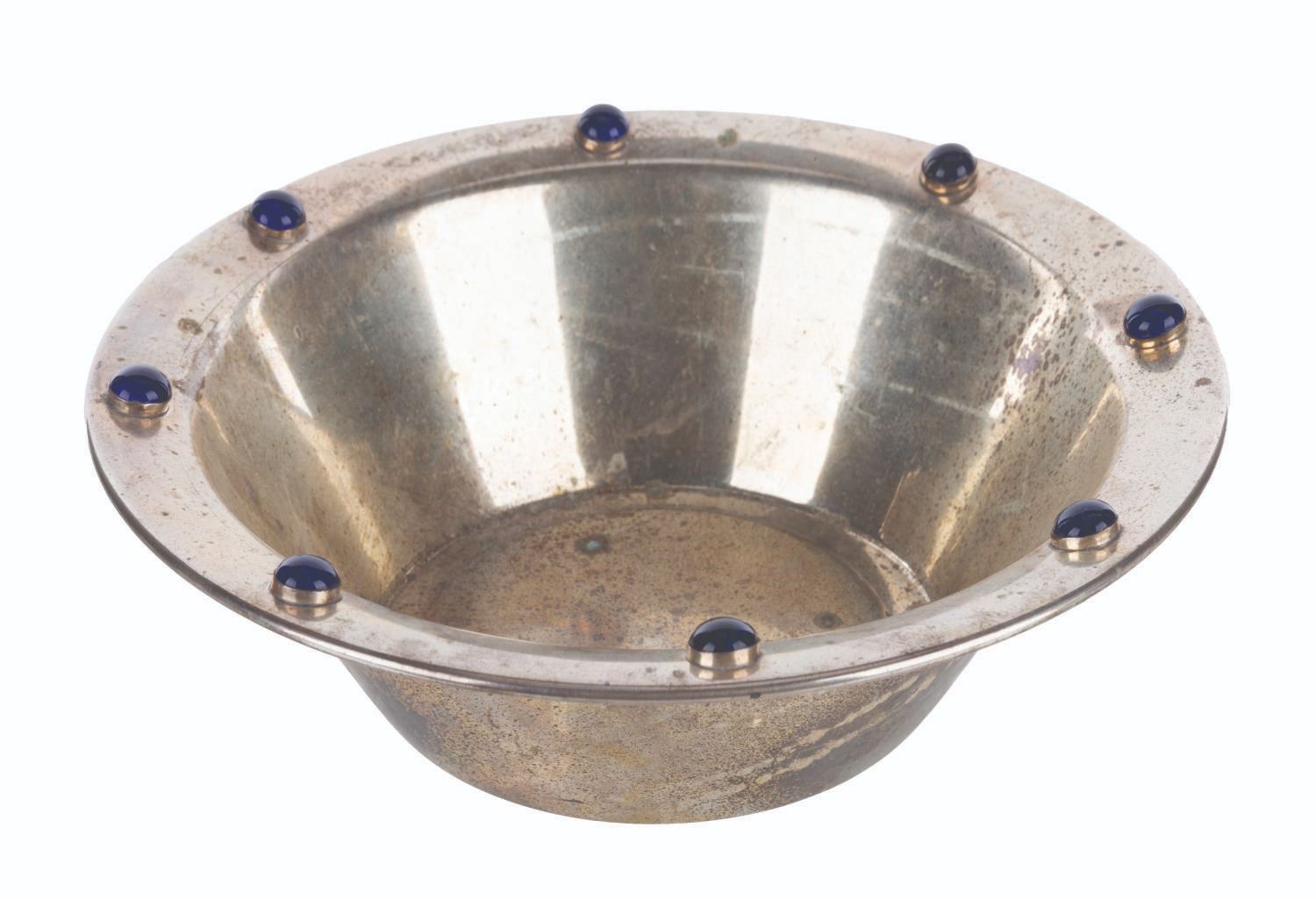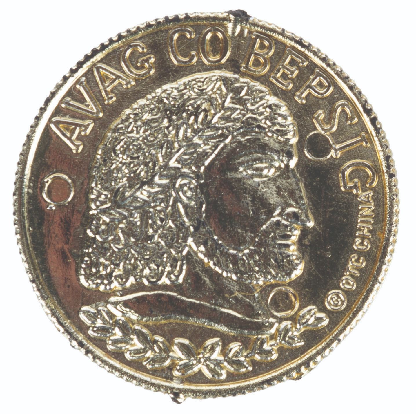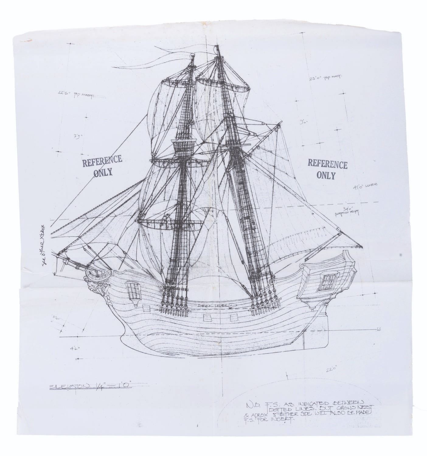(Disney, 1996) A collection of production materials and props from "Muppet Treasure Island.” Included are a reference photocopy blueprint for the Hispaniola, two prop gold-toned plastic doubloons and a prop faux jewel rimmed brass bowl, and a premiere screening invitation and button. Measuring from the 1.25” diameter doubloons to the 18” x 17” photocopy, the items display in good to very good condition with light edge wear and creasing to the photocopy and invitation, light wear and stains to the doubloons and button, and tarnish to the bowl.