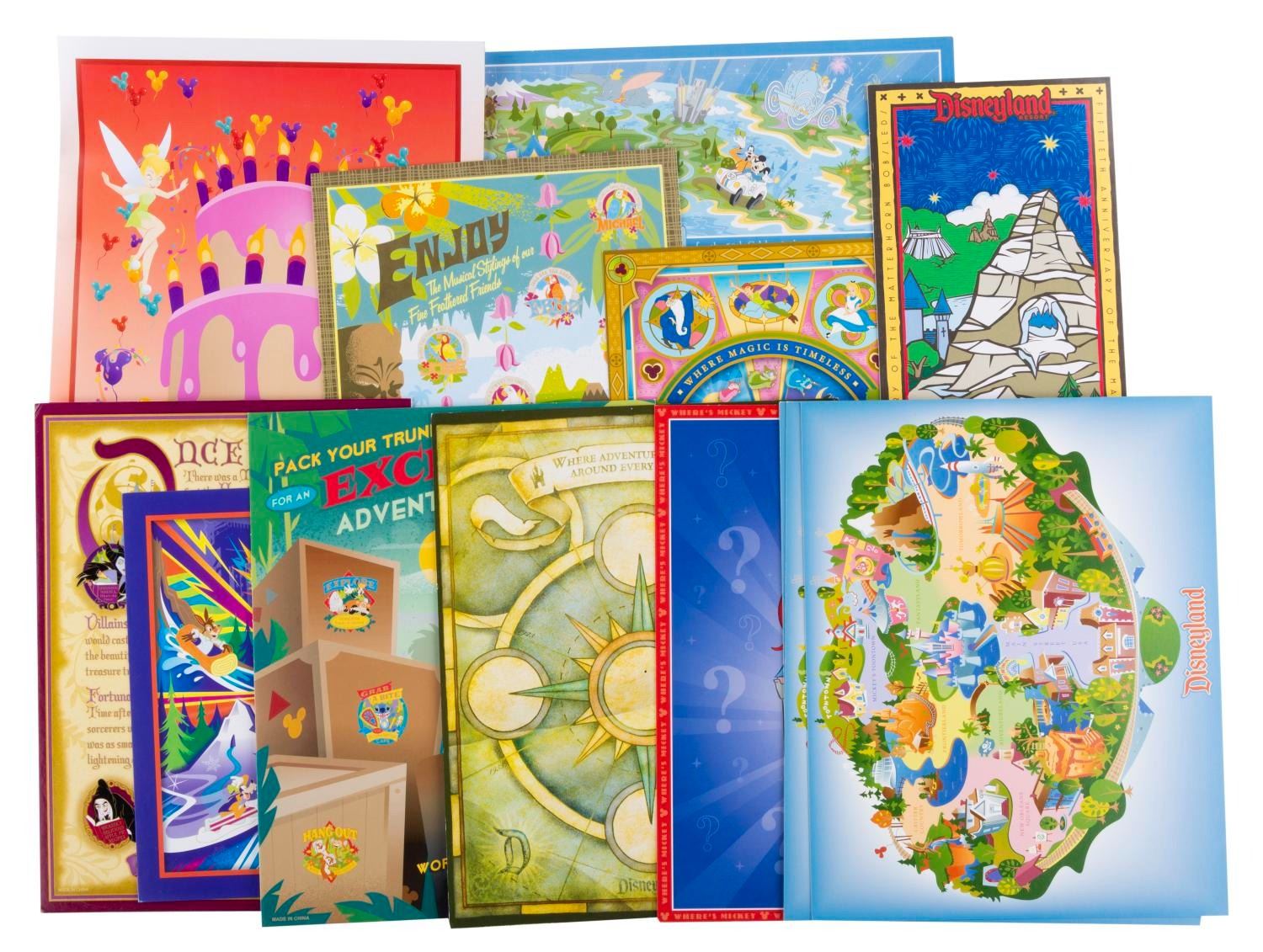 (Disneyland, 2000s) A collection of 13 pin collecting boards, including 4 duplicate Disneyland map boards, from various pin collecting events. Also included in this lot is a “Celebrate” pop-up foldout. Ranging in size from 5” x 10.25” to 8.5” x 12”, the items are in very good to fine condition with light crease and wear.