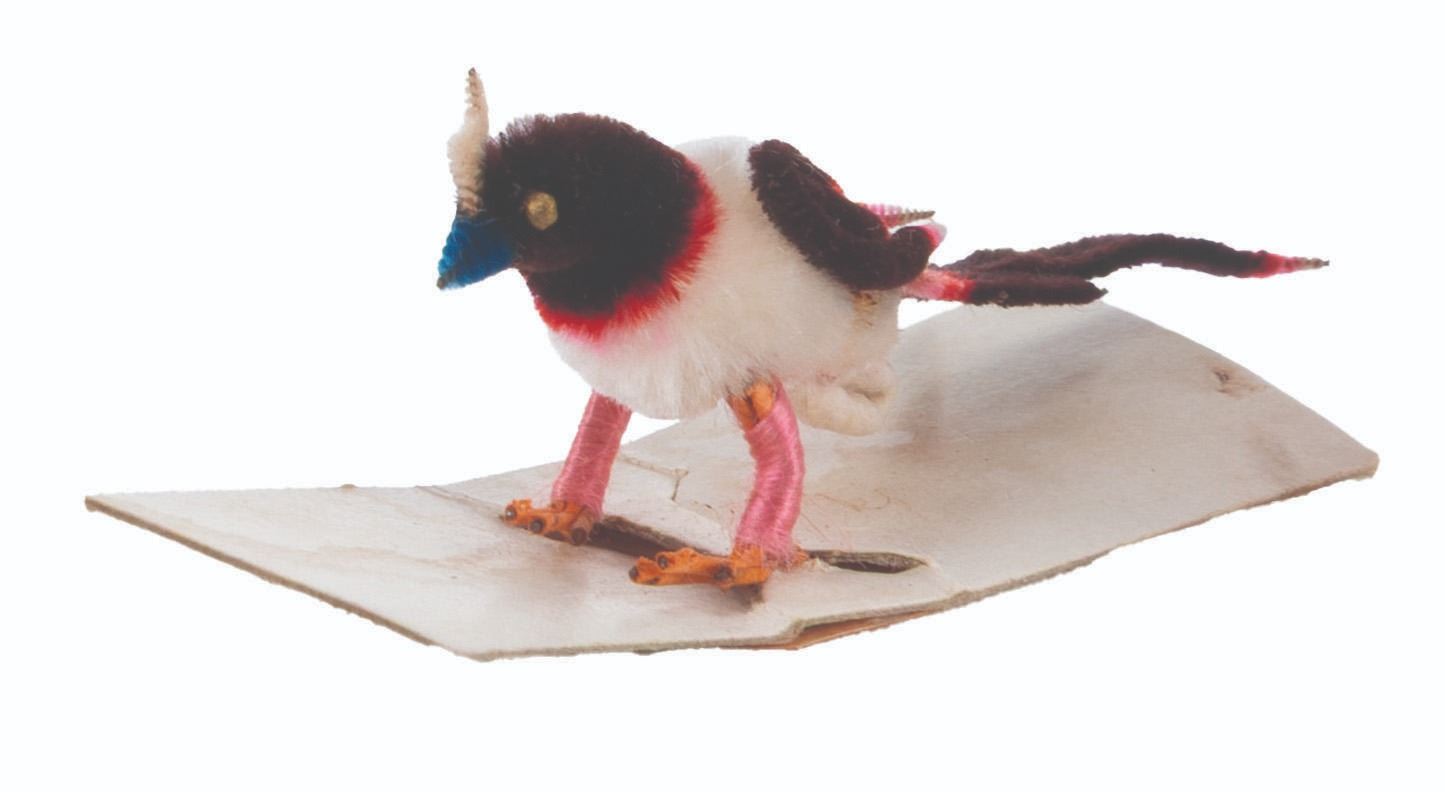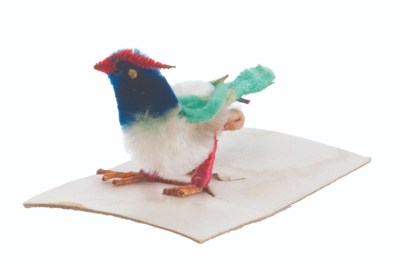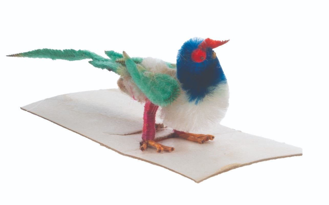 (Walt Disney World, 1970s) A collection of seven pipecleaner birds with an antelope and lemur pair. A delicate handicraft of twisting pipecleaners to sculpt animals, several of the critters retain the Walt Disney World price tag. Measuring 1" tall to 2" tall, the figures are in good condition with light soiling and staining.