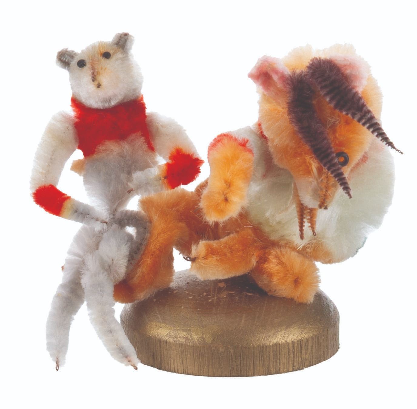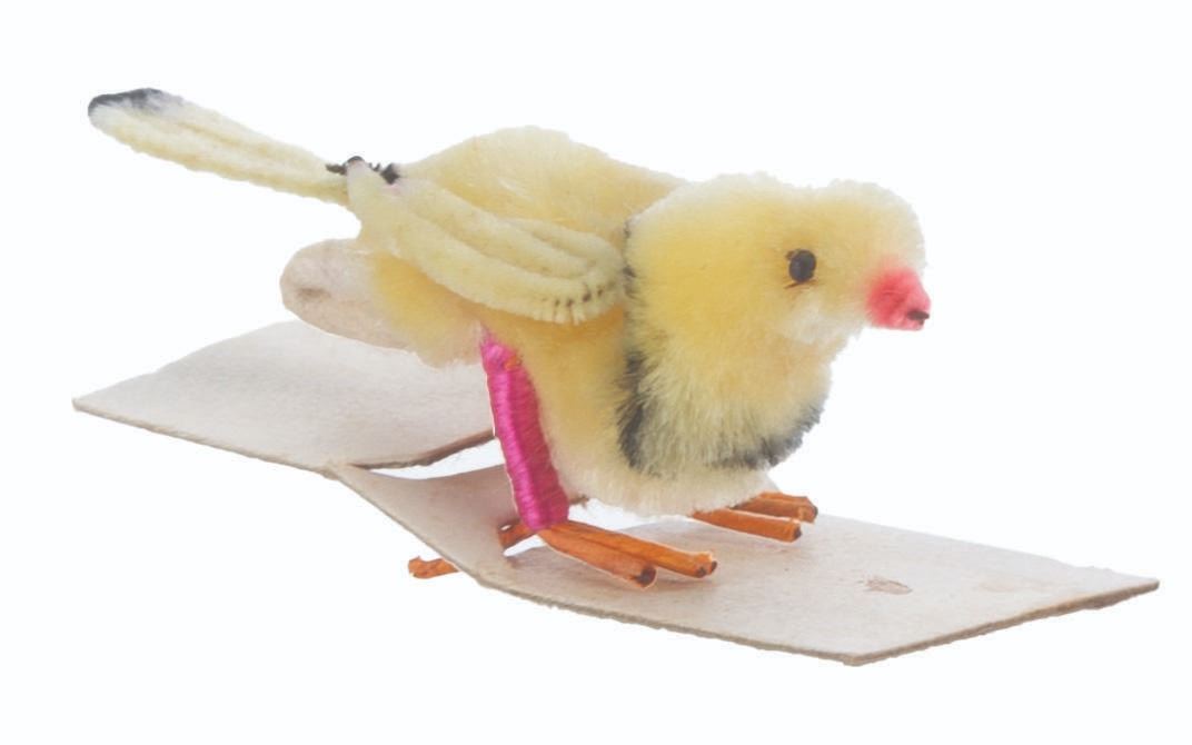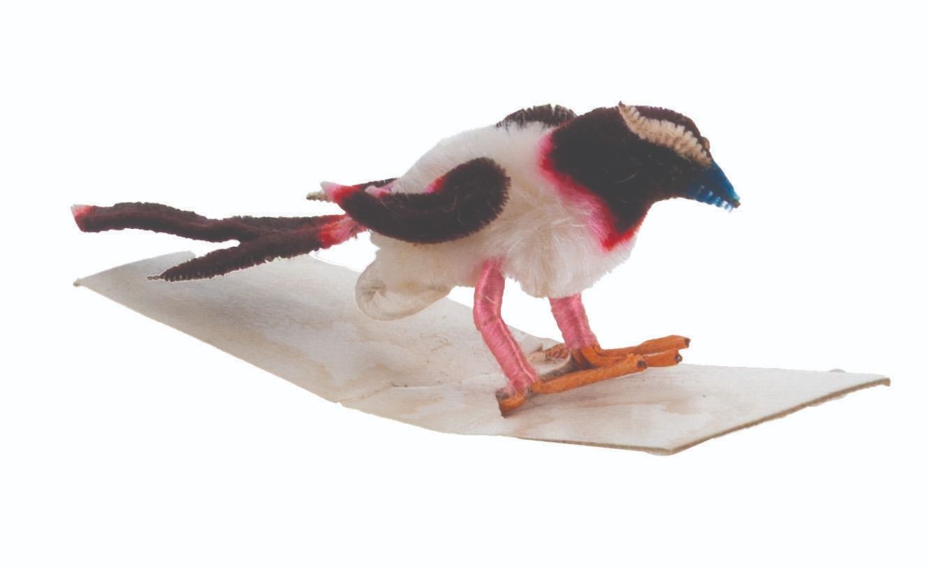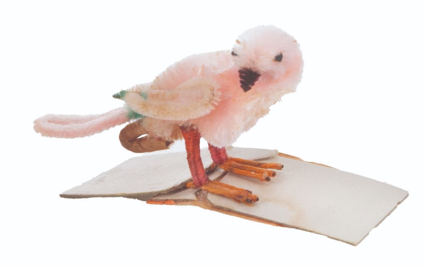 (Walt Disney World, 1970s) A collection of seven pipecleaner birds with an antelope and lemur pair. A delicate handicraft of twisting pipecleaners to sculpt animals, several of the critters retain the Walt Disney World price tag. Measuring 1" tall to 2" tall, the figures are in good condition with light soiling and staining.