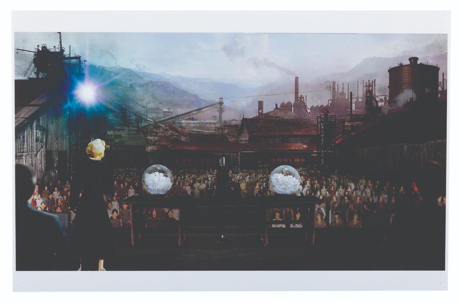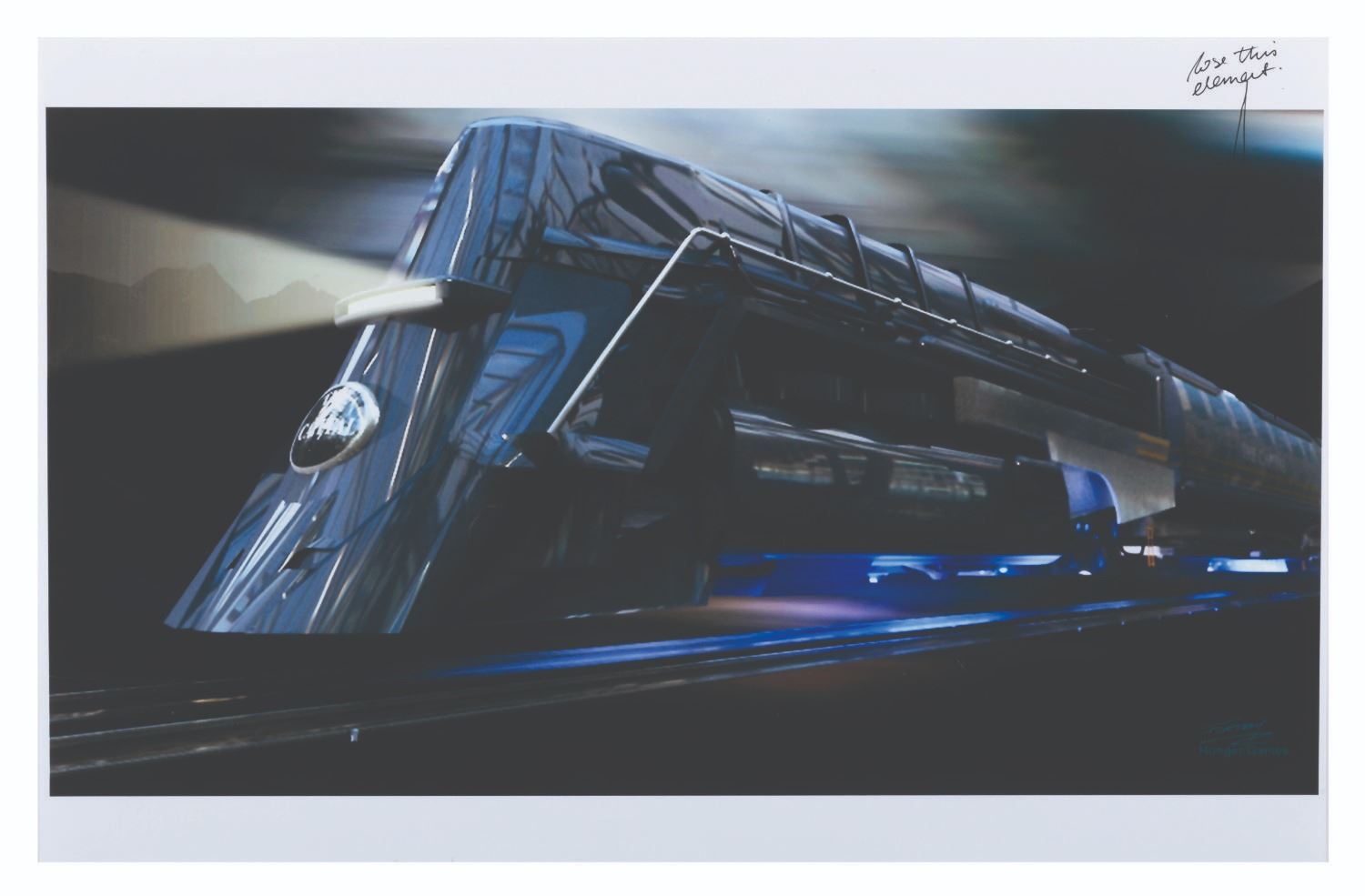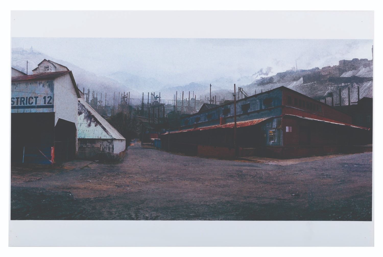 (Lionsgate, 2012) A collection of six production-used photo prints from “The Hunger Games,” based on the hit novel by Suzanne Collins. Featured are location designs for Panem, including the Capitol, the train, and District 12, home of Jennifer Lawrence’s Katniss Everdeen. Ranging in size from 8.5” x 19” to 11” x 17”, the photo prints are in very good condition with light scratches, pinholes at the corners from display, and black marker notations from production use.