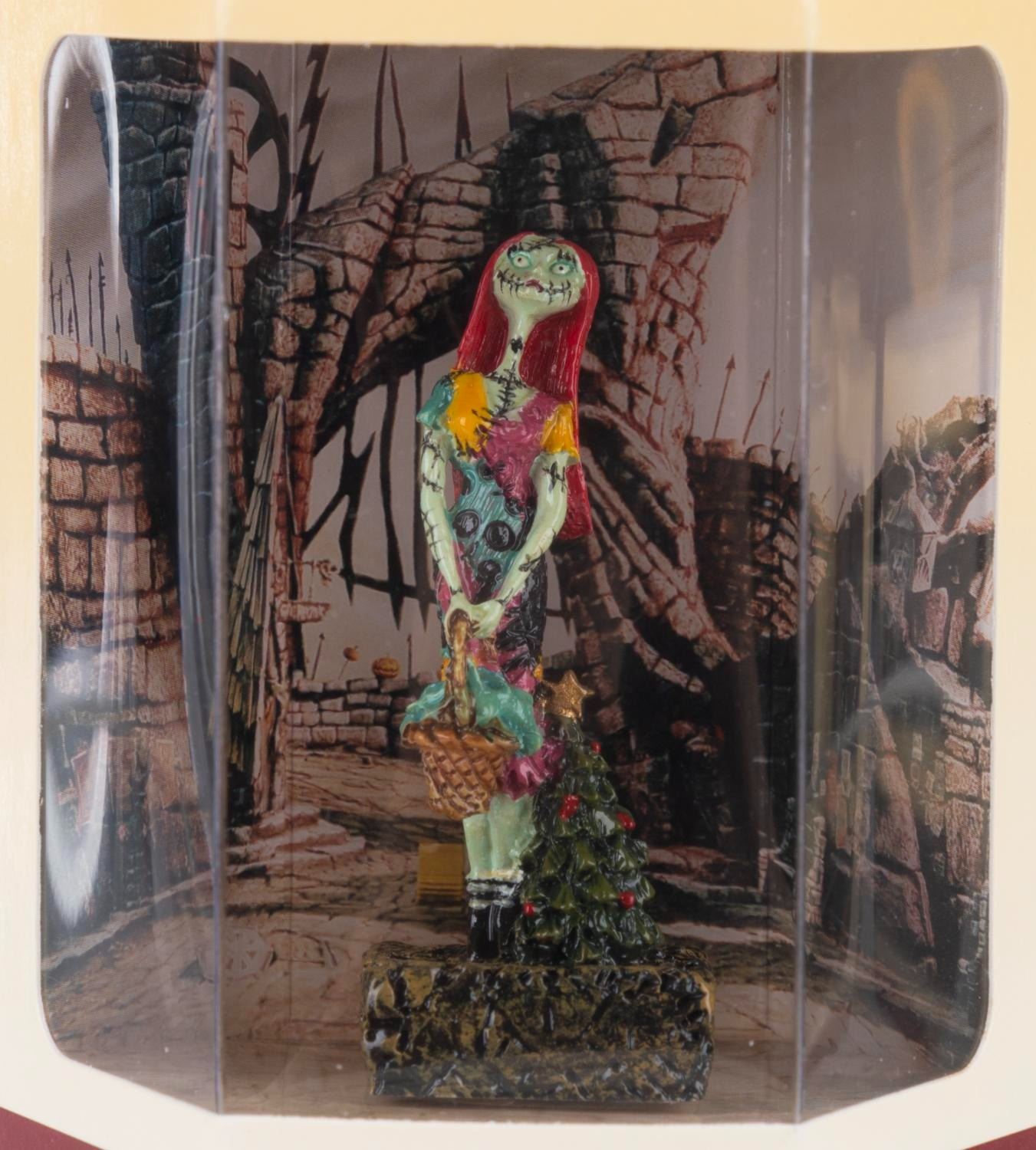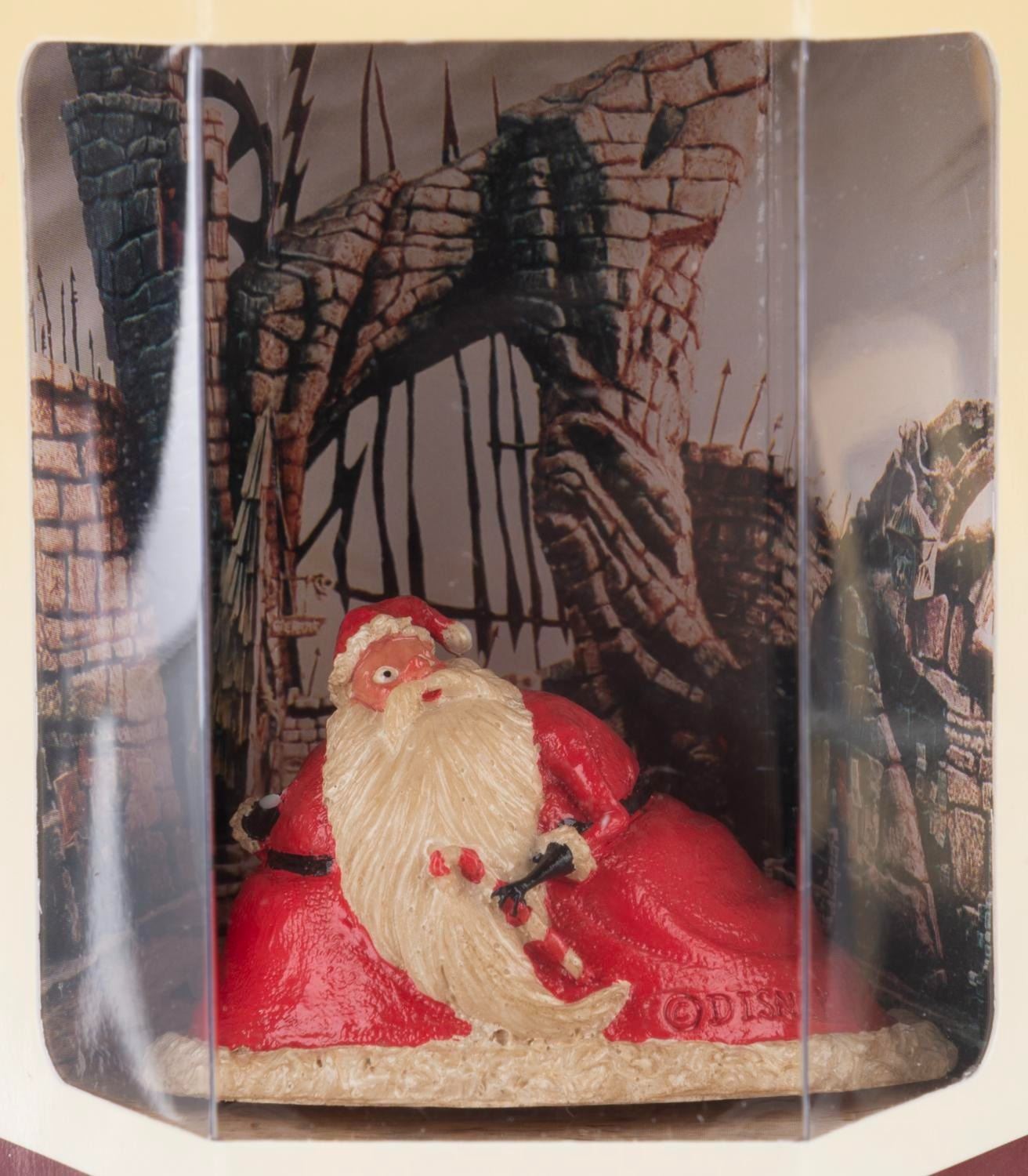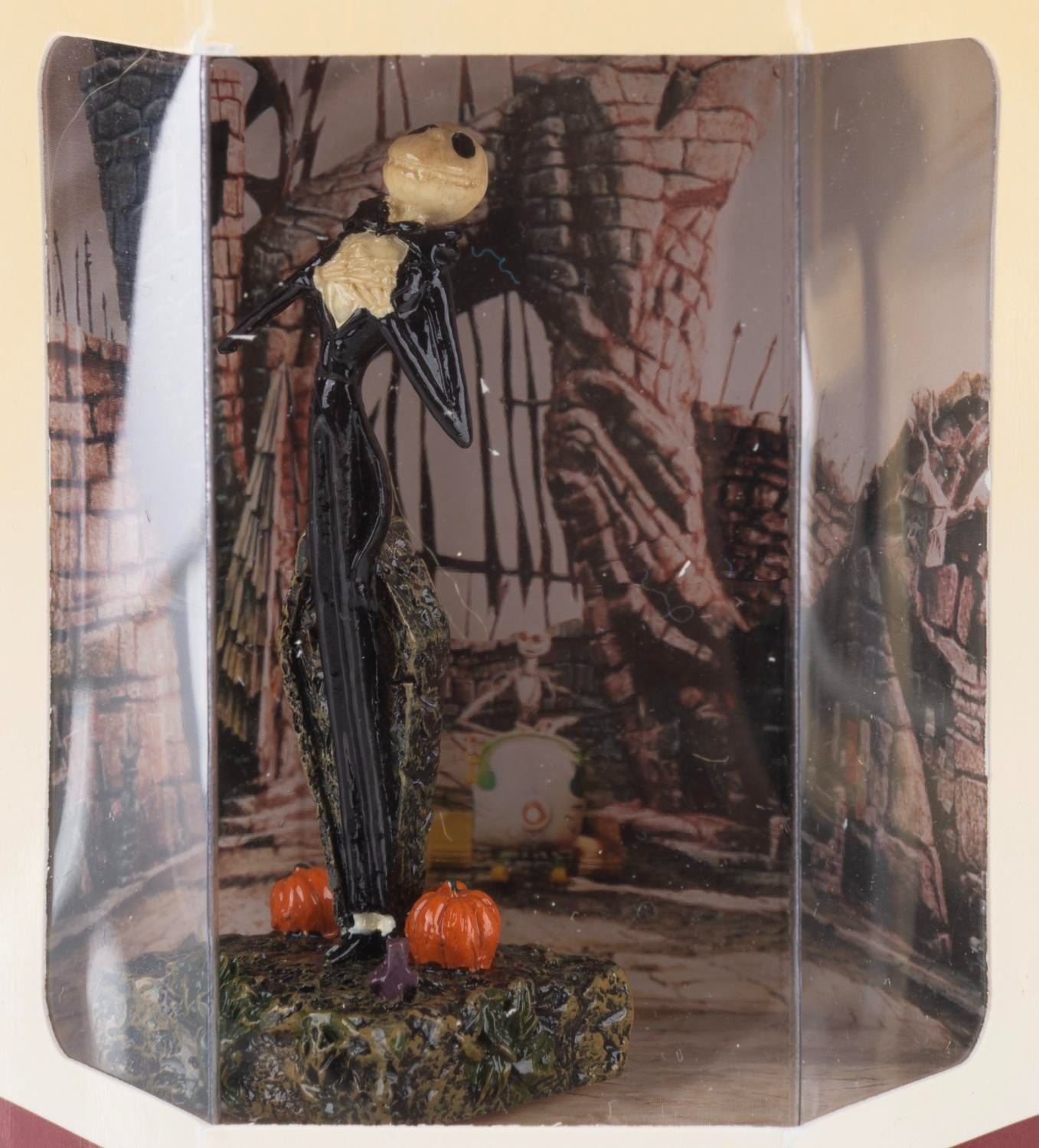 (Disney Store, 1990s) A collection of 11 "Nightmare Before Christmas" Tiny Kingdom figurines in their original boxes, including Lock, Shock, Mayor, Evil Scientist, Oogie Boogie, Barrel, Santa, Zero, Jack, Sally and Santa Jack. Measuring 3" x 3" x 3.5" in the box, the figures are in fine condition with a few figures loose in their boxes.