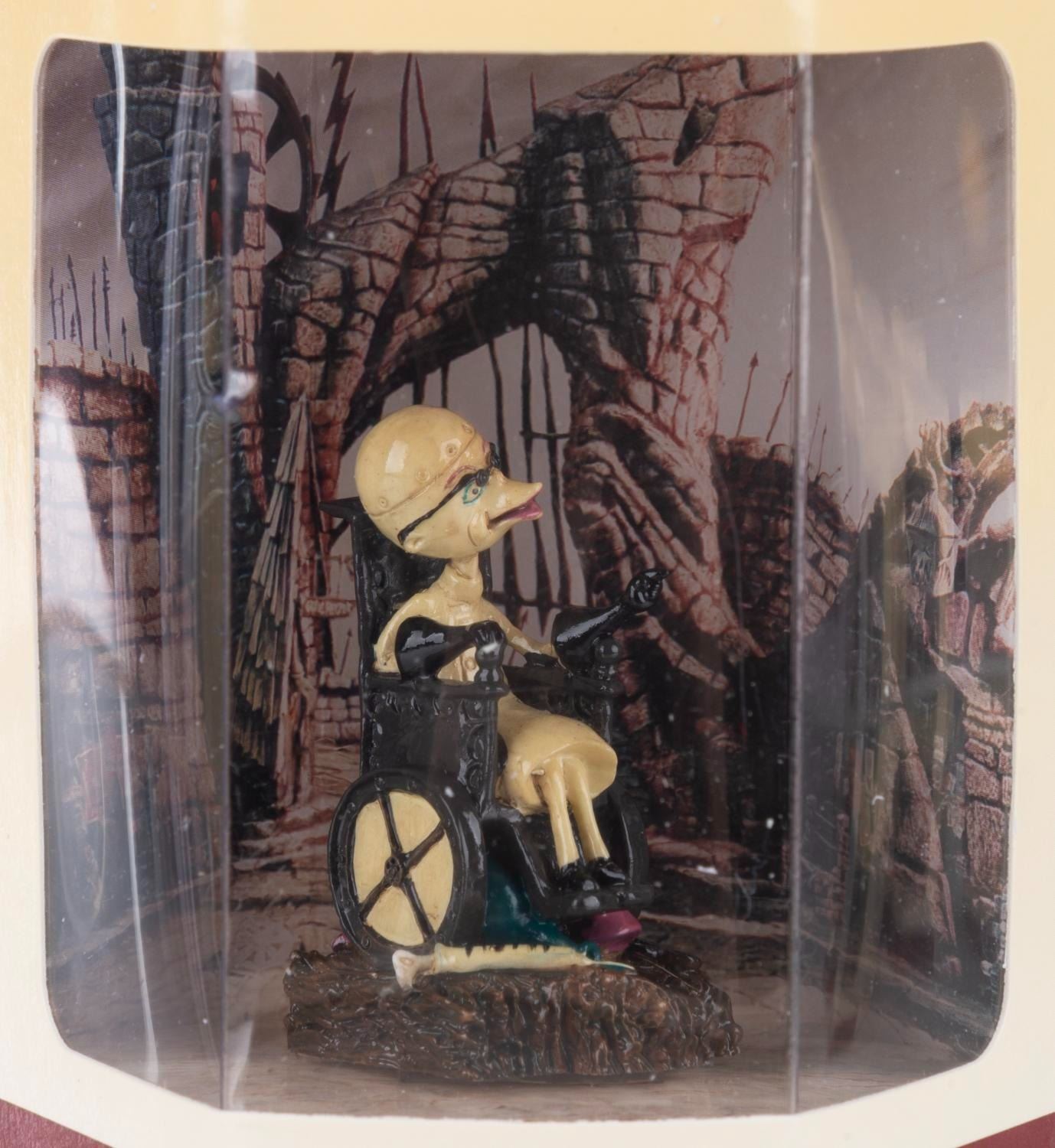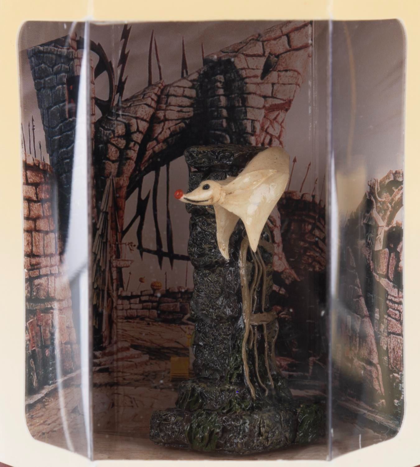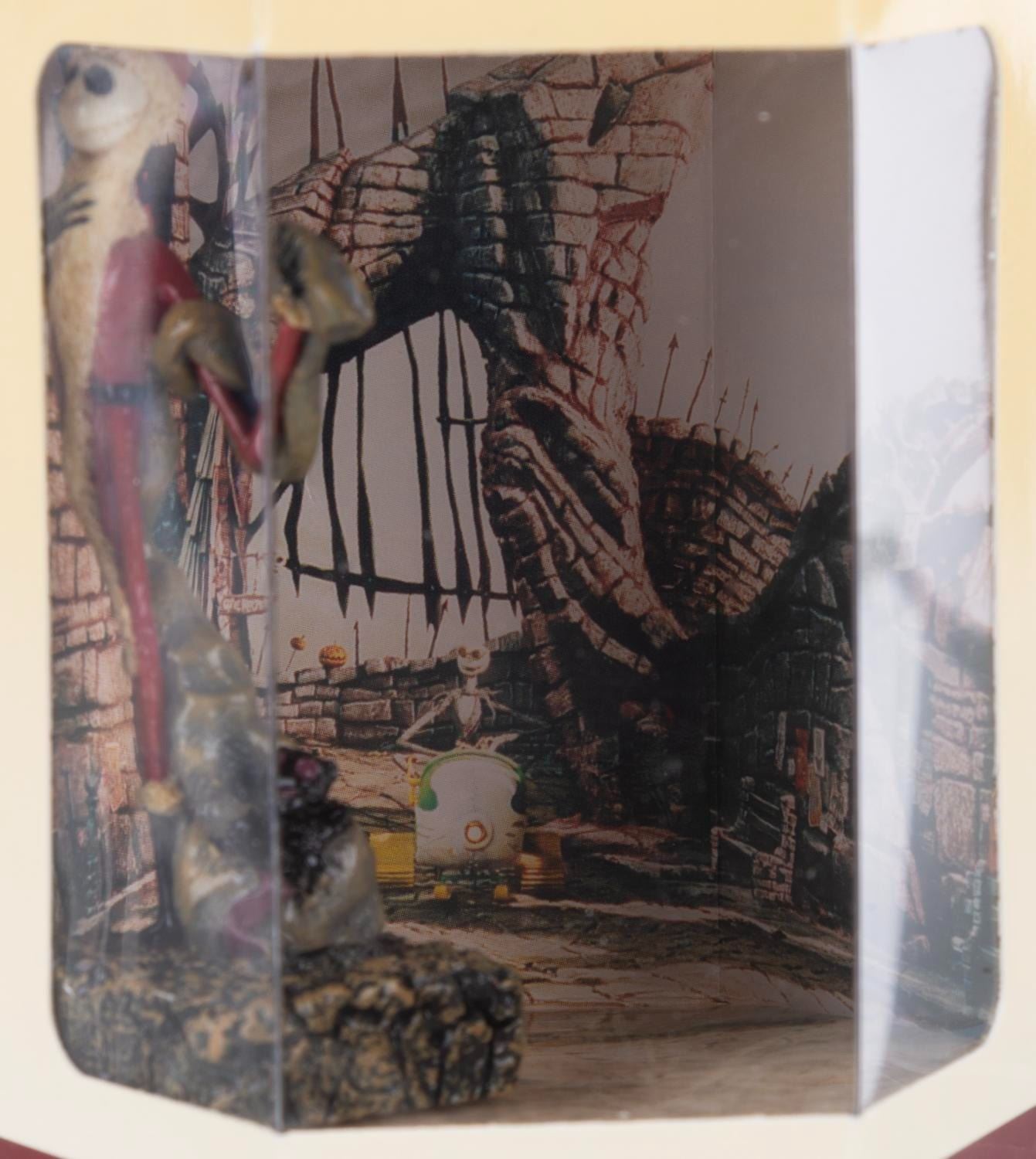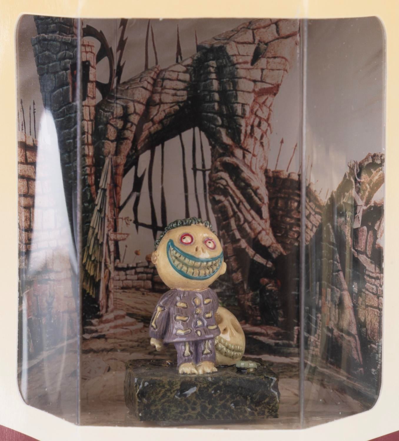 (Disney Store, 1990s) A collection of 11 "Nightmare Before Christmas" Tiny Kingdom figurines in their original boxes, including Lock, Shock, Mayor, Evil Scientist, Oogie Boogie, Barrel, Santa, Zero, Jack, Sally and Santa Jack. Measuring 3" x 3" x 3.5" in the box, the figures are in fine condition with a few figures loose in their boxes.