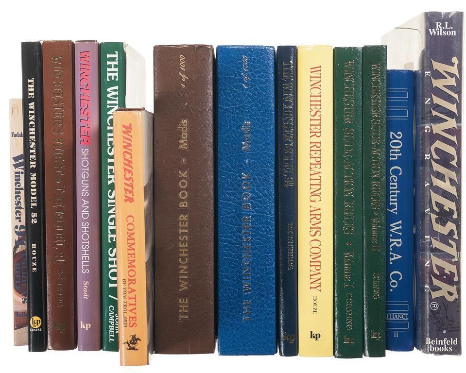 This collection includes the following books and authors: A Catalog Collection of 20th Century Winchester Repeating Arms Co. by Alliance Books; the Winchester Model 94, The First 100 Years by Robert C. Renneberg; Winchester Engraving by R.L. Wilson; Winchester Slide- Action Rifles Volume I: Model 1890 & Model 1906 by Ned Schwing; Winchester Slide- Action Rifles Volume II: Model 61 & Model 62 by Ned Schwing; The Winchester Book, 1 of 1000 by George Madis; The Winchester Book, Silver Anniversary Edition, 1 of 1000 by George Madis; Winchester Repeating Arms Company, Its History & Development from 1865 to 1981 by Herbert G. Houze; Winchester Commemoratives by Tom Troland; Winchester 94, America's Rifle by Sam Fadalla; The Winchester Model 52, Perfection in Design by Herbert G. Houze; Winchester's Finest, The Model 21 by Ned Schwing; Winchester Shotguns & Shotshells, From the Hammer Double to the Model 59 by Ronald W. Stadt; The Winchester Single- Shot, A History & Analysis by John Campbell.