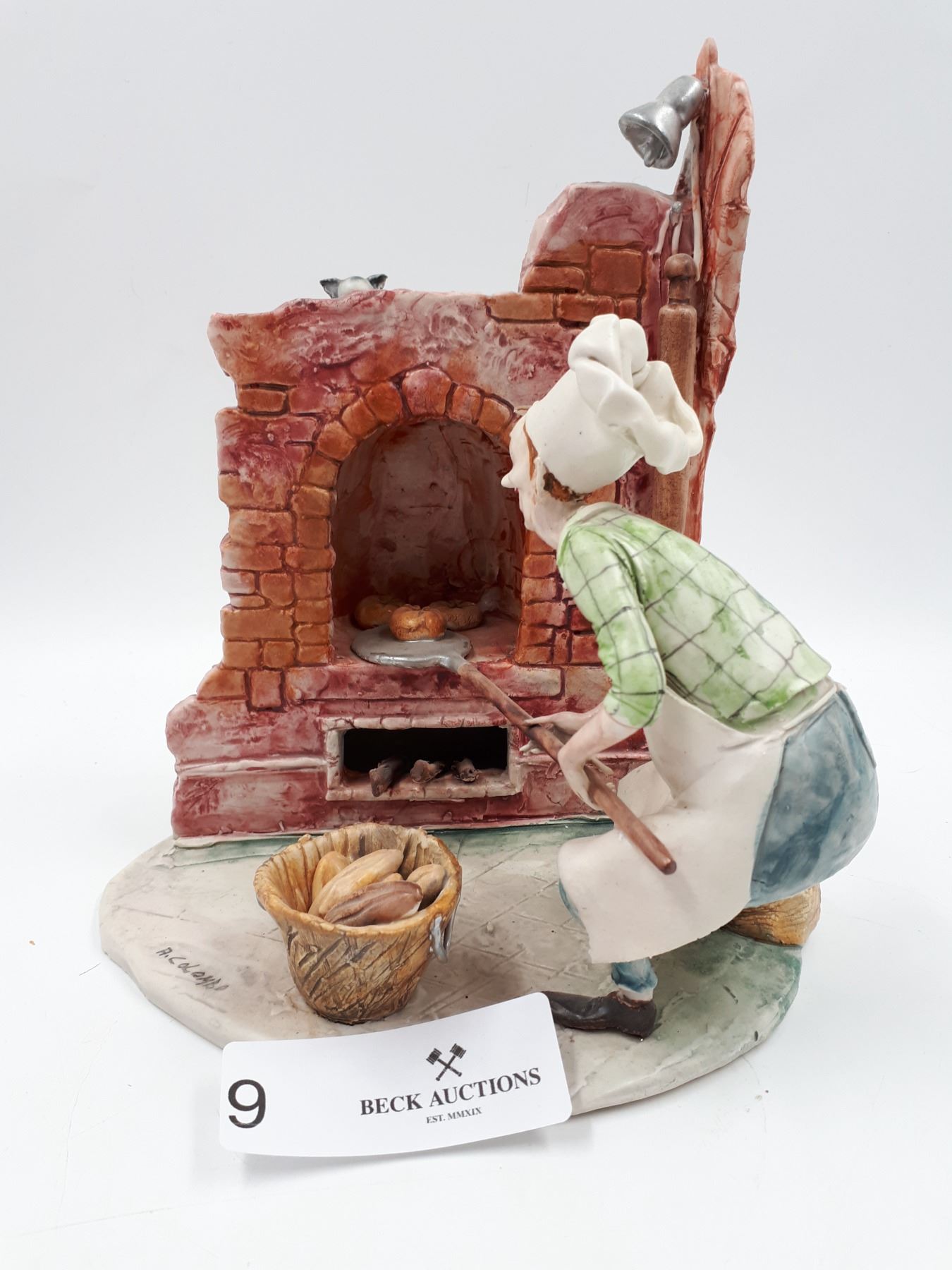 A Colombo handmade baker sculpture with no chips or breaks. measures approx 9 inches tall x 8 inches wide.