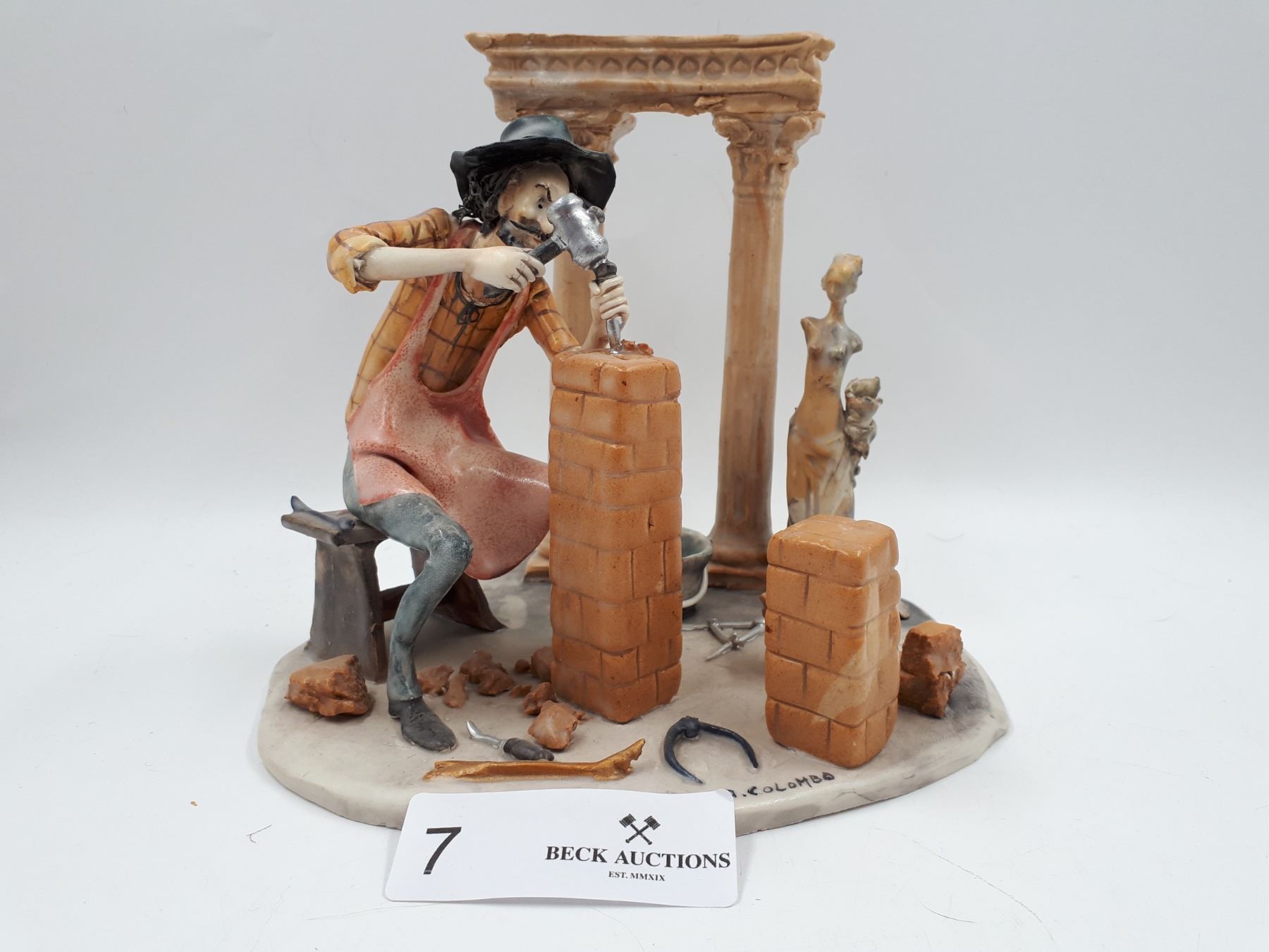 A Colombo handmade sculpture measures approx 7 inches tall x 8 inches wide. No chips or breaks