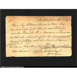 A Colonial DocumentA payment order for William Thorne or order, for 108 $2s6d, for his attendance in committee to settle the accounts of the late Committee and Council of Safety.<p>It is signed by John Baird, Speaker of the Pennsylvania House, and is dated Sep. 11, 1778. Important notice: We expect to be auctioning lots at the rate of 200-250 per hour. Sometimes eBay Premier live bid software cannot keep up with that pace, so we strongly recommend that you place a realistic proxy bid now as insurance to avoid disappointment. Also please note that all Heritage/CAA lots purchased through eBay Premier carry a 20% Buyer's Premium.