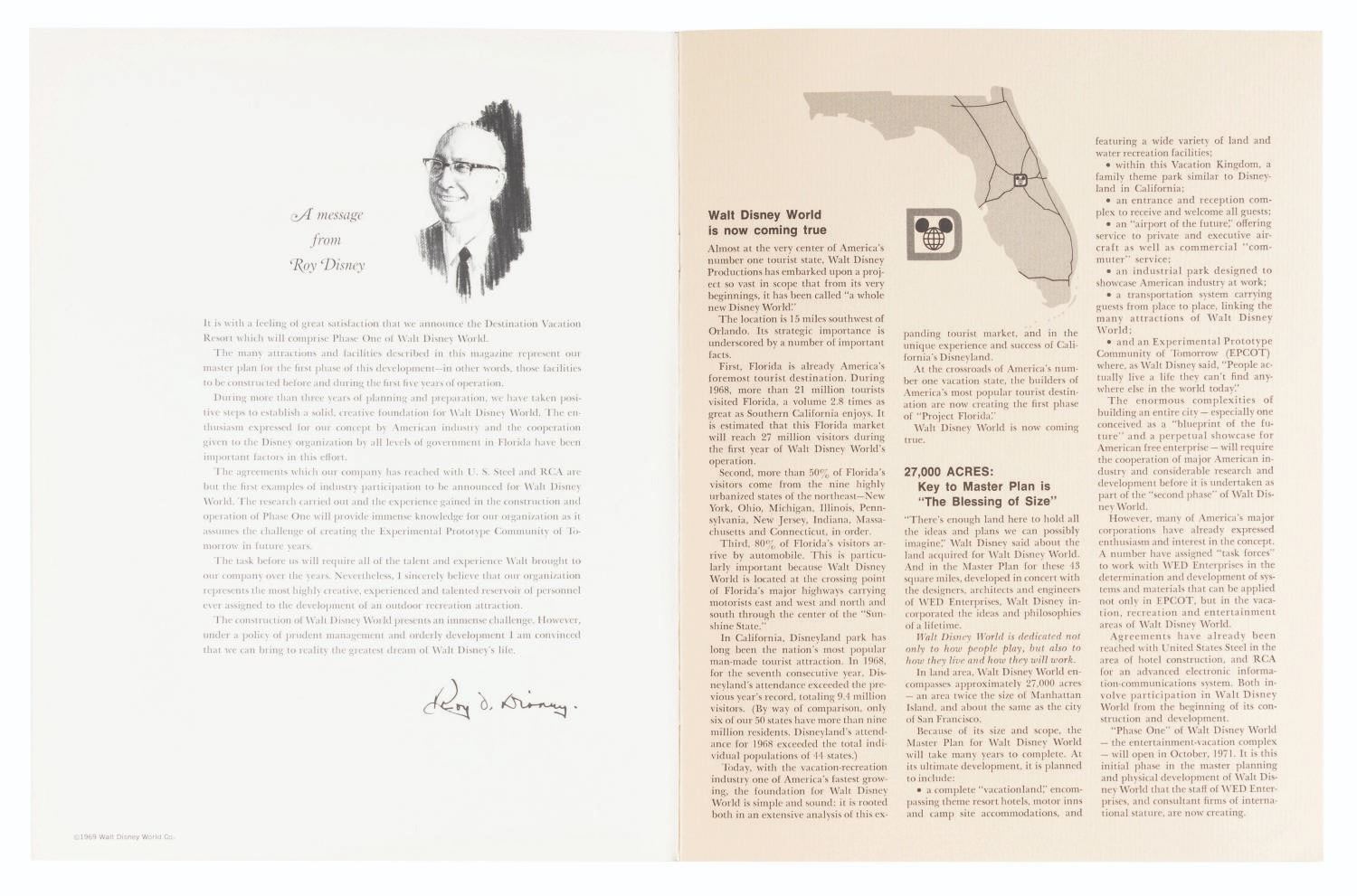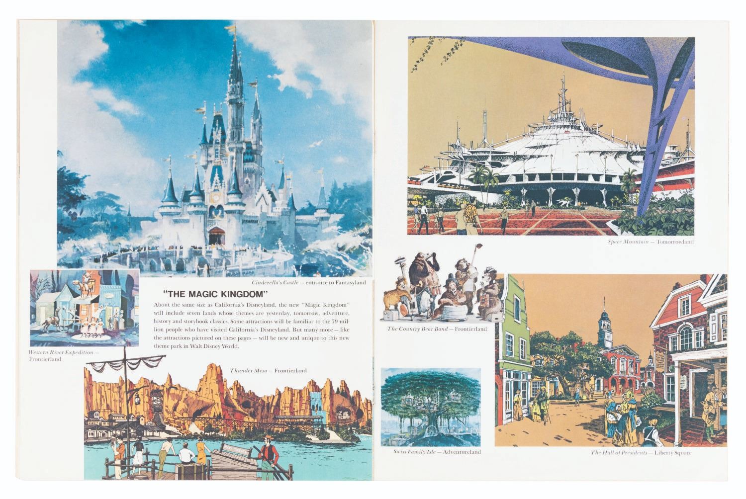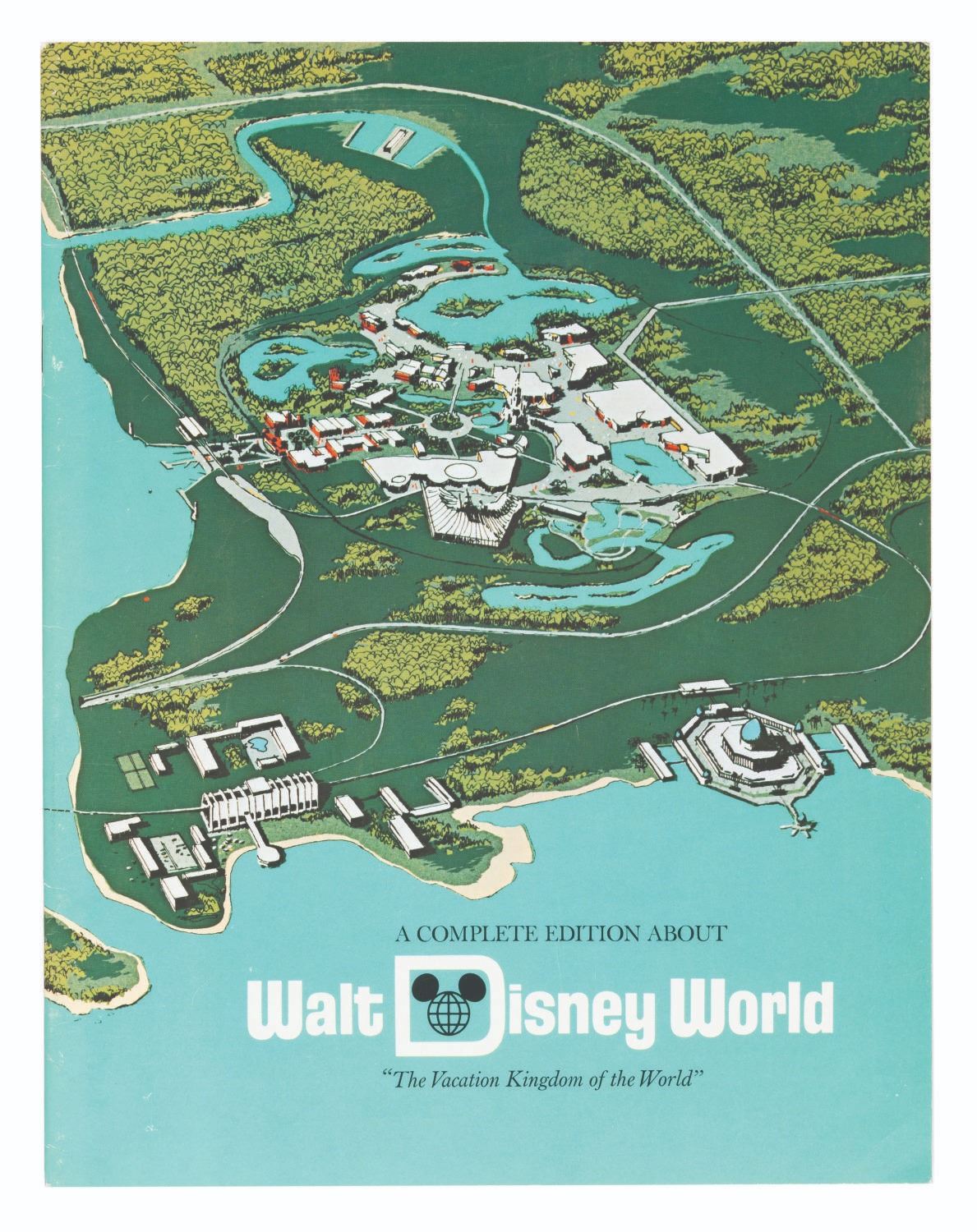 (Walt Disney World, 1969) An early "A Complete Edition About Walt Disney World" booklet providing details about the coming attractions, entertainment, hotels, and information relating to Walt Disney World’s 1971 opening. The 12-page booklet includes concept artwork and behind-the-scenes photographs of Imagineers working on the new attractions. Measuring 8.5" x 11", the booklet is in very good condition with light edge wear, creasing, and scuffs.