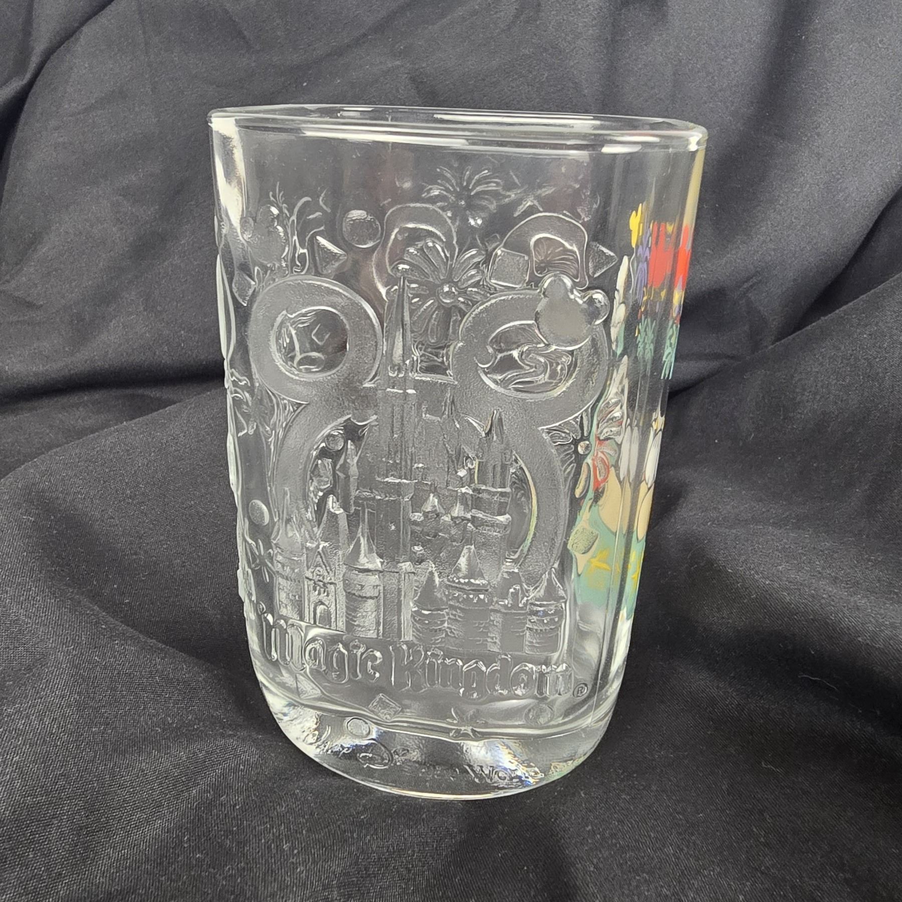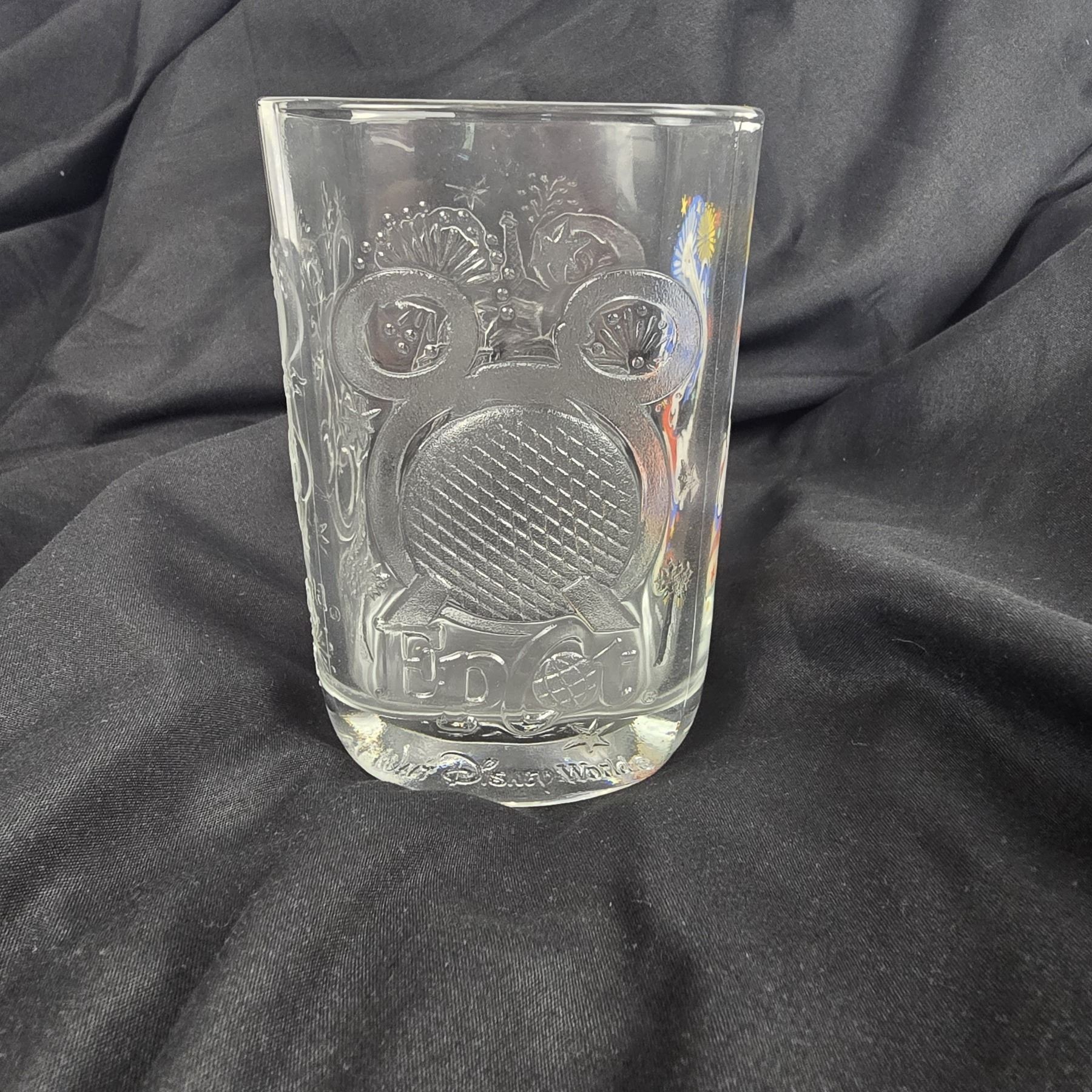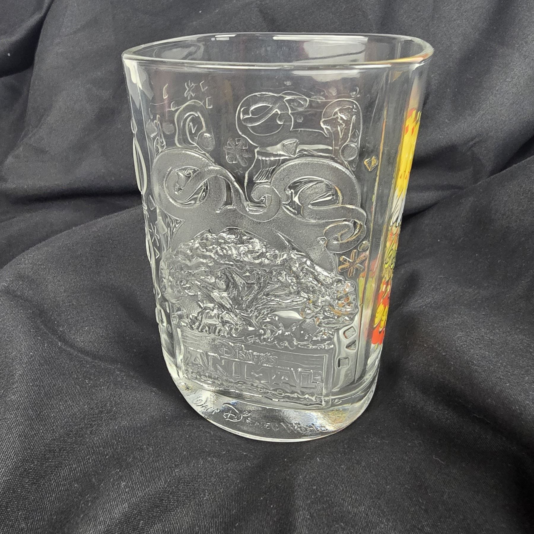 (McDonald's, 2000) This is a complete set of McDonald's glasses celebrating the year 2000 at the Walt Disney World Resort. Each glass features a different park and has a colorful image of a variant of Mickey Mickey and etchings of each of the four parks icons or features. These glasses are sturdy and in great condition. Each glass measures 3.25” x .3.25” x 4.75” and the total weight is 3 lbs 8 oz.
