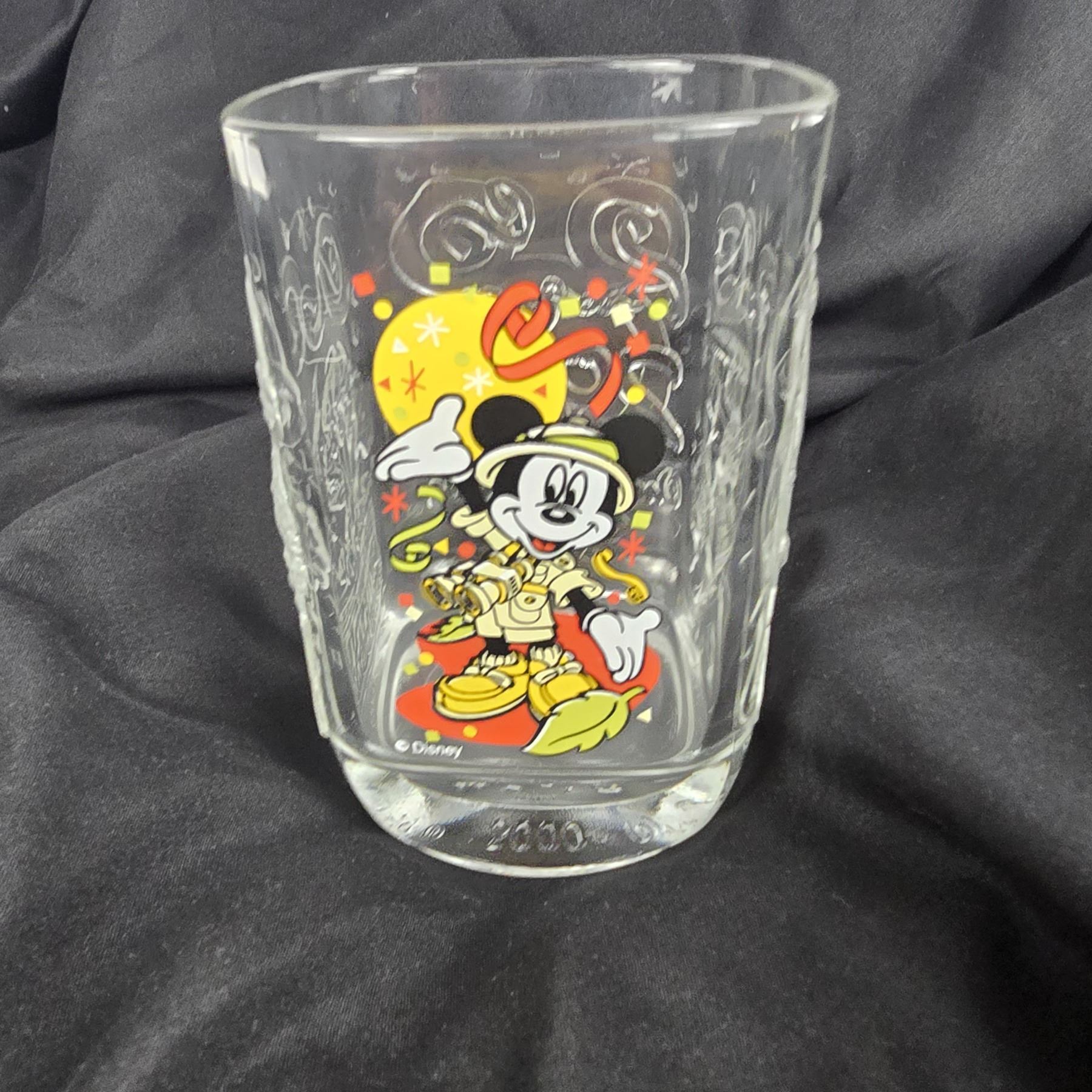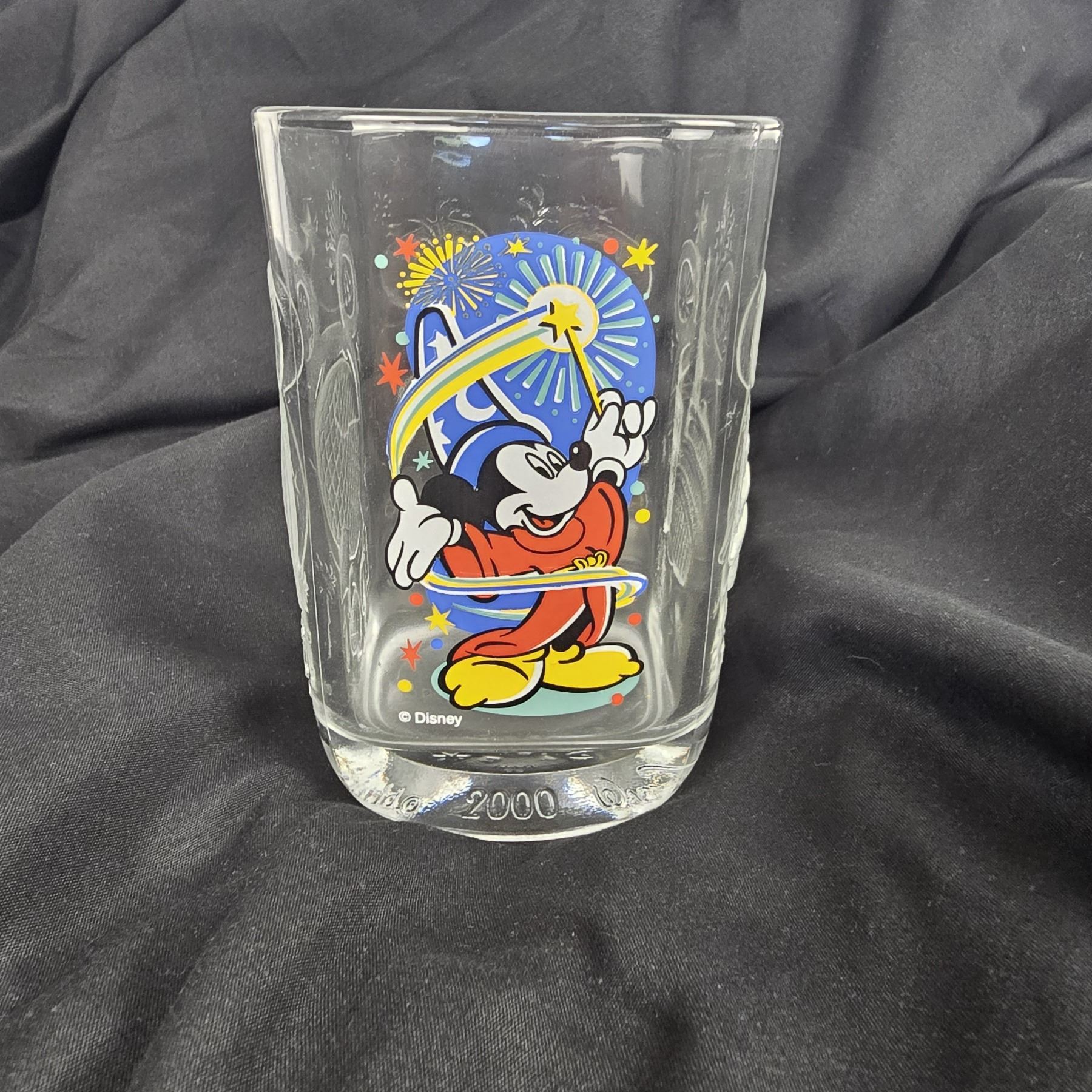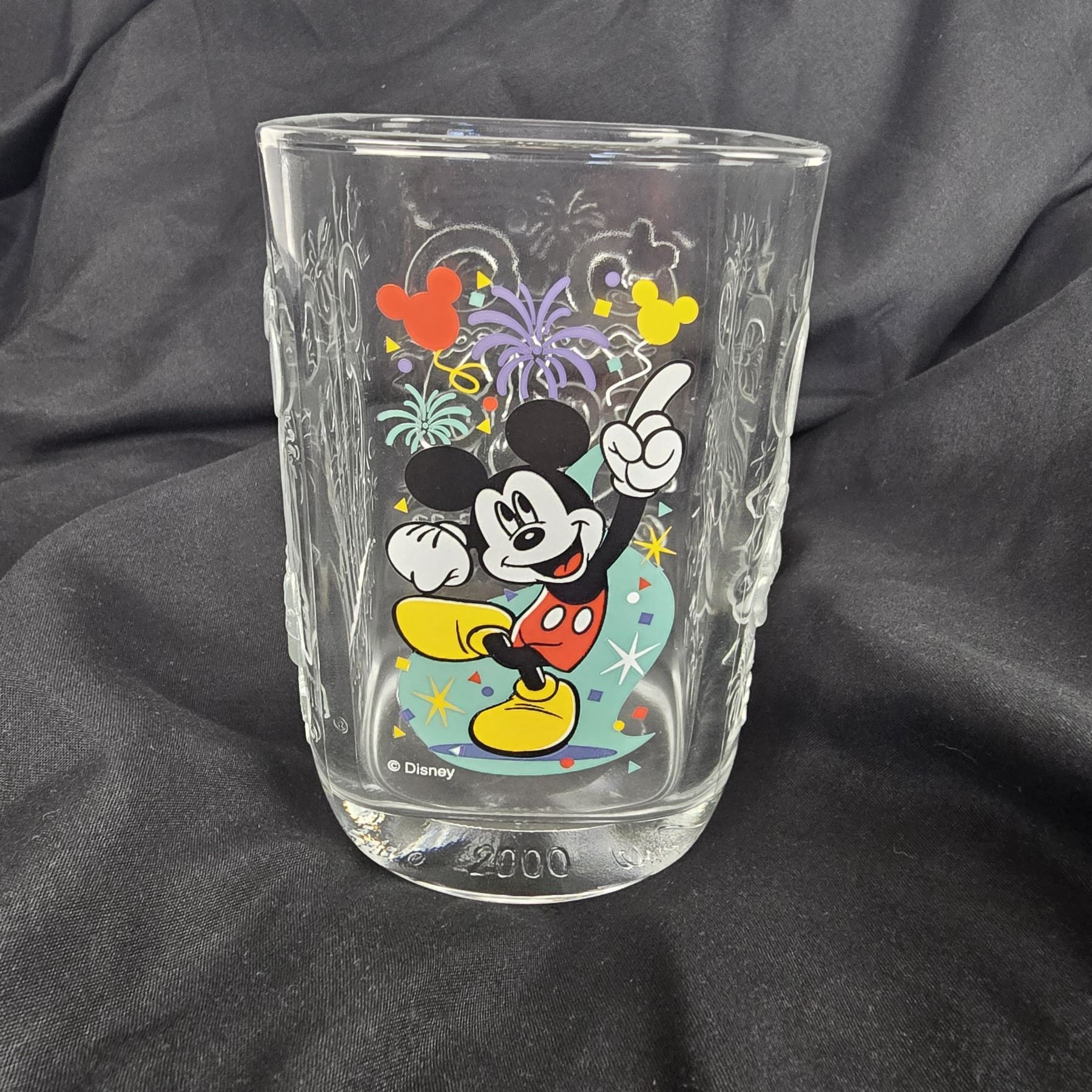 (McDonald's, 2000) This is a complete set of McDonald's glasses celebrating the year 2000 at the Walt Disney World Resort. Each glass features a different park and has a colorful image of a variant of Mickey Mickey and etchings of each of the four parks icons or features. These glasses are sturdy and in great condition. Each glass measures 3.25” x .3.25” x 4.75” and the total weight is 3 lbs 8 oz.