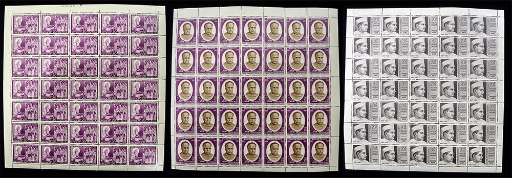 Sheets, 1970, 6, Vidyasagar(Phila # 517),Maharsi Vakmiki(Phila # 519),Cent. of Calcutta Ports Trust (Phila # 520), 50th Annv. of Jamia Millia Islamia(Phila # 521), Jamanalal Bajaj(Phila # 522), 50thAnn. of India Red Cross(Phila # 523),MNH, Very Good Condition.
