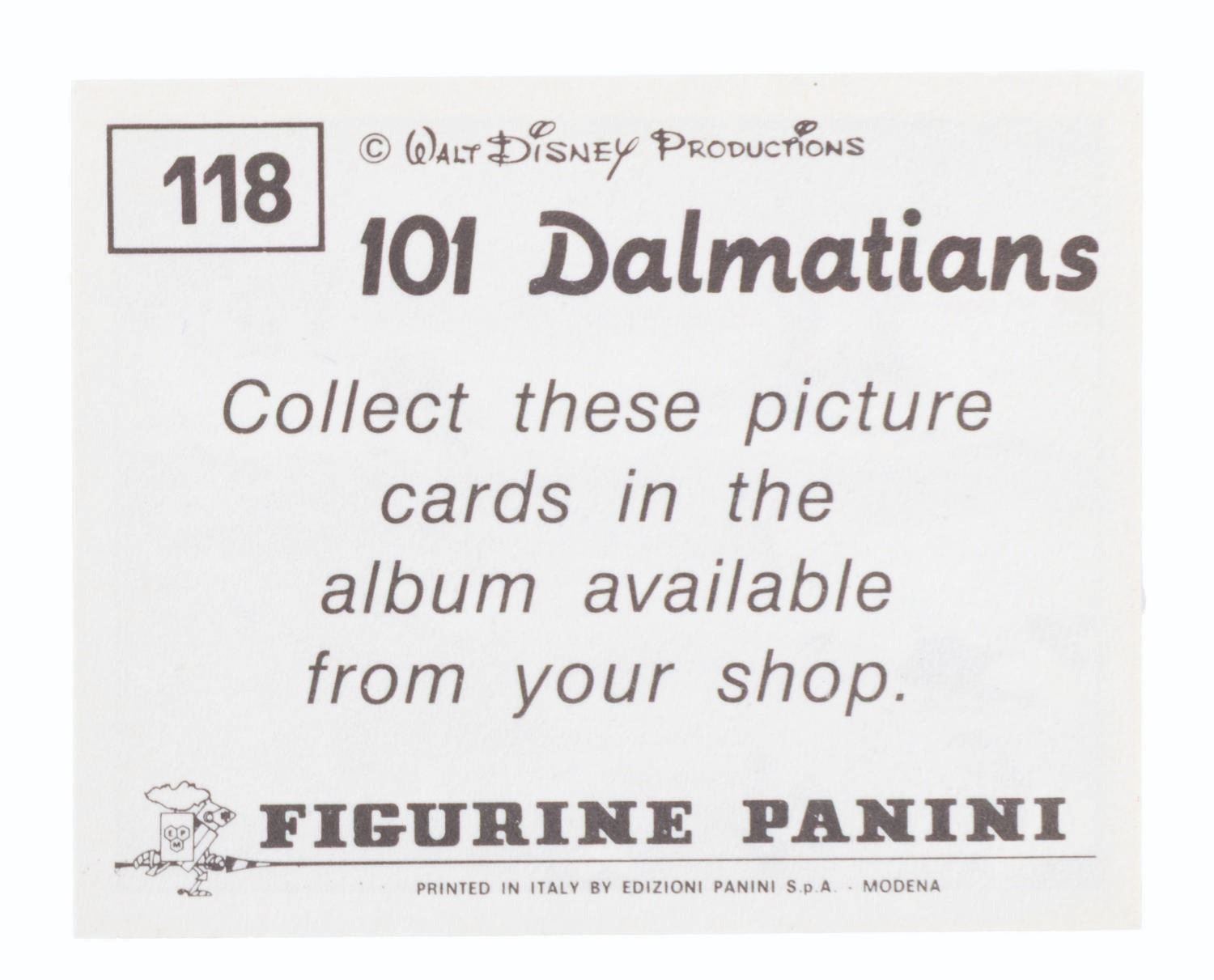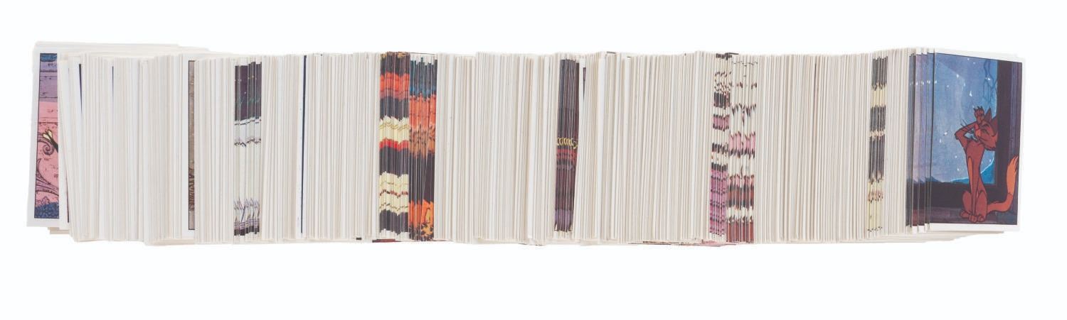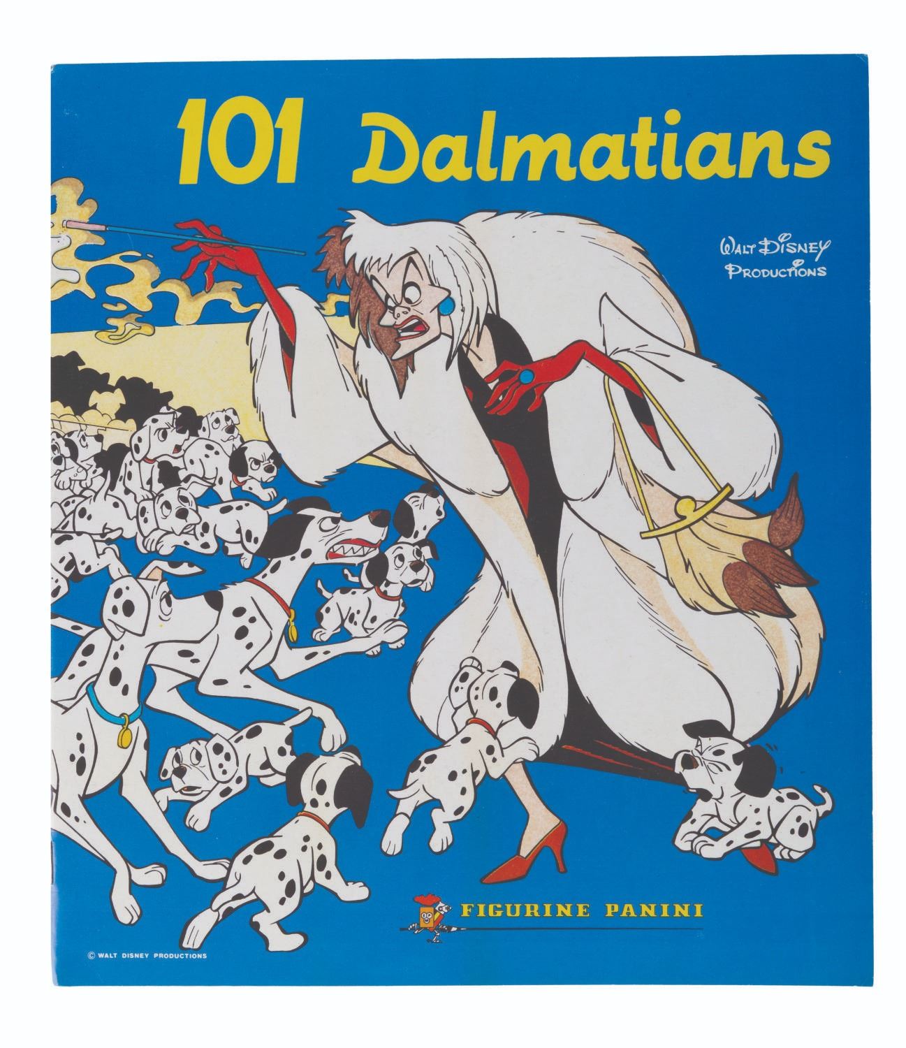(Panini, 1990s) A completely filled "One Hundred and One Dalmatians" Panini sticker album. Also included are over 500 extra stickers and a store display box. The album and stickers are in very good condition, with the box in good condition with handling wear and tape.