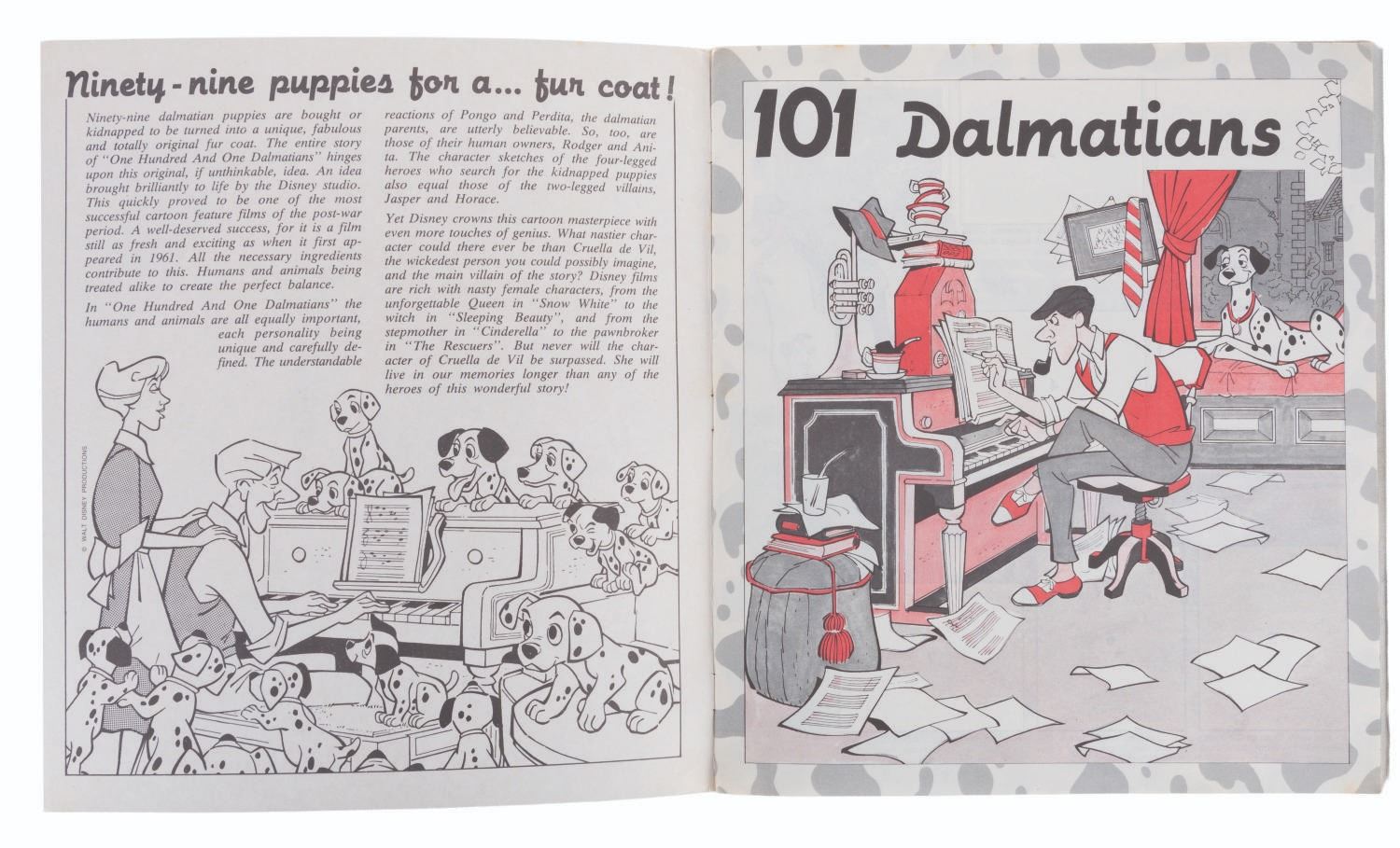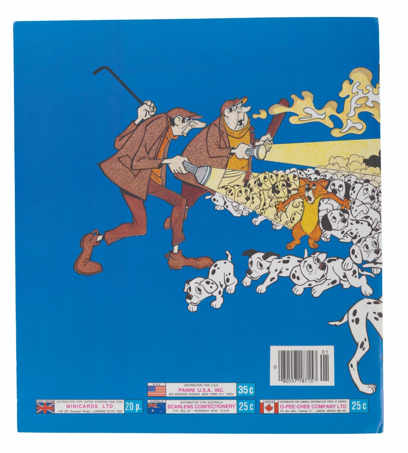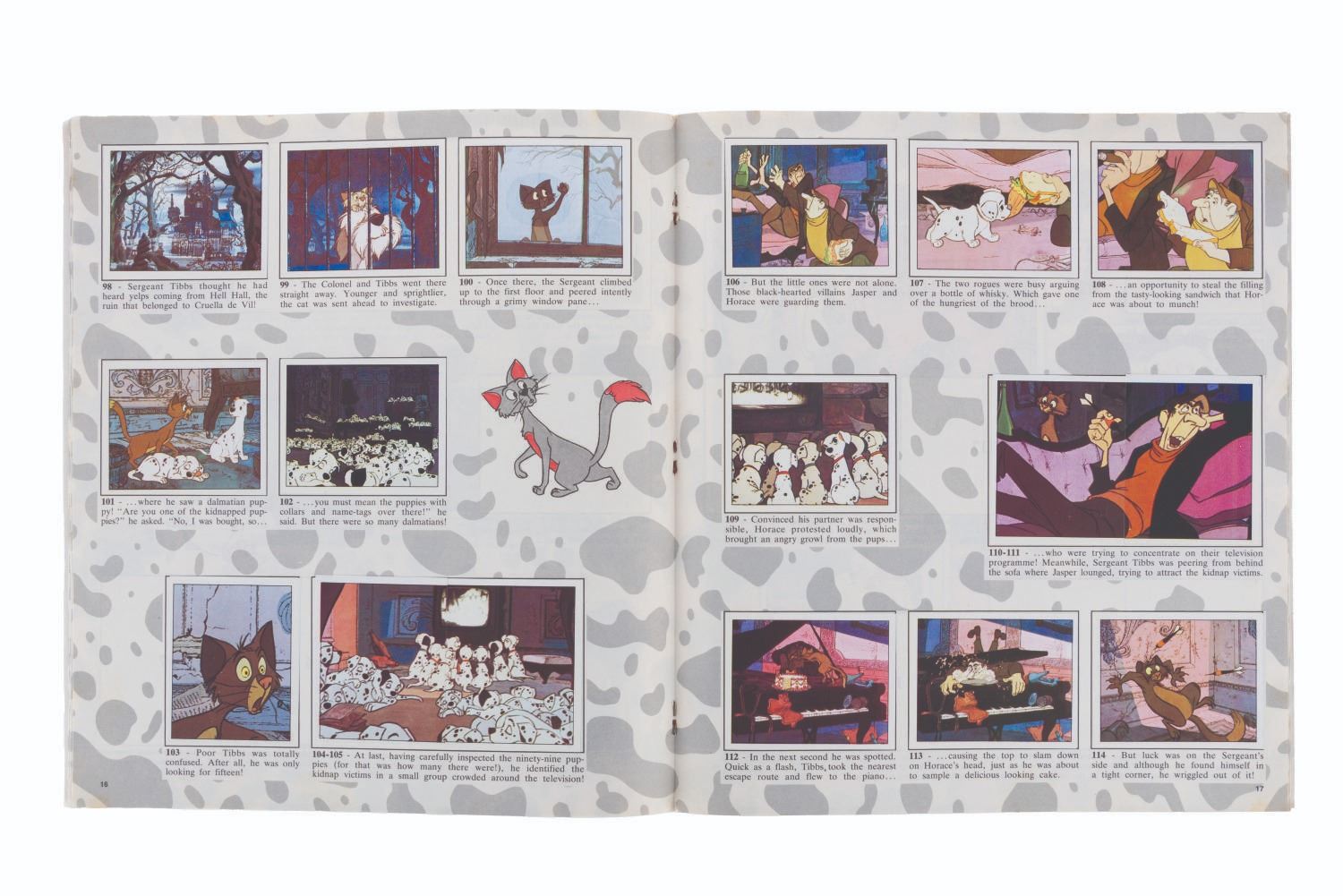 (Panini, 1990s) A completely filled "One Hundred and One Dalmatians" Panini sticker album. Also included are over 500 extra stickers and a store display box. The album and stickers are in very good condition, with the box in good condition with handling wear and tape.