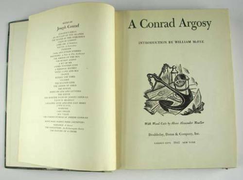 A Conrad Argosy, (Joseph Argosy) introduction by William McFee, with woodcuts by Hans Alexander Mueller, published by Doubleday, Doran & Company of New York, 1942, from the Estate of Charles Bunnell, Condition: Very Good, minor wear to the cover, no dust jacket