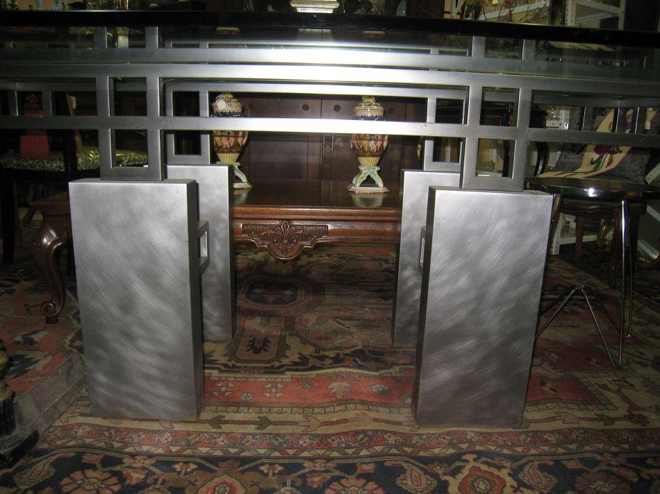 A Contemporary Glass and Aluminium Table, Designer Unknown.