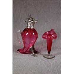 A Continental Cranberry Glass Claret Jug in the Form of Parrot with Silver Plated Head and Feet. Est. 200-300