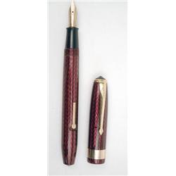 A Conway Stewart 27, rose herringbone celluloid with wide cap band and no.5 nib £50-70...