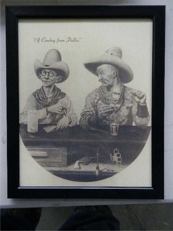 "A Cowboy from Dallas" Western Print - By B.R. McCowen Numbered & Limited Edition Illustration of the Comical "Drug Store Cowboy" in a bar.