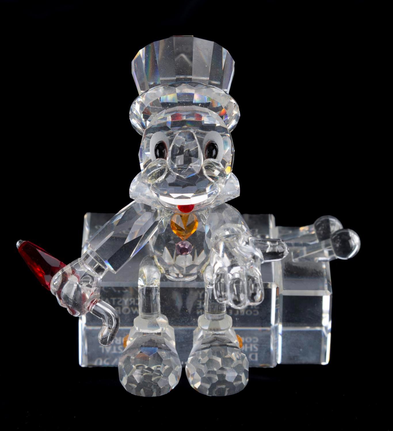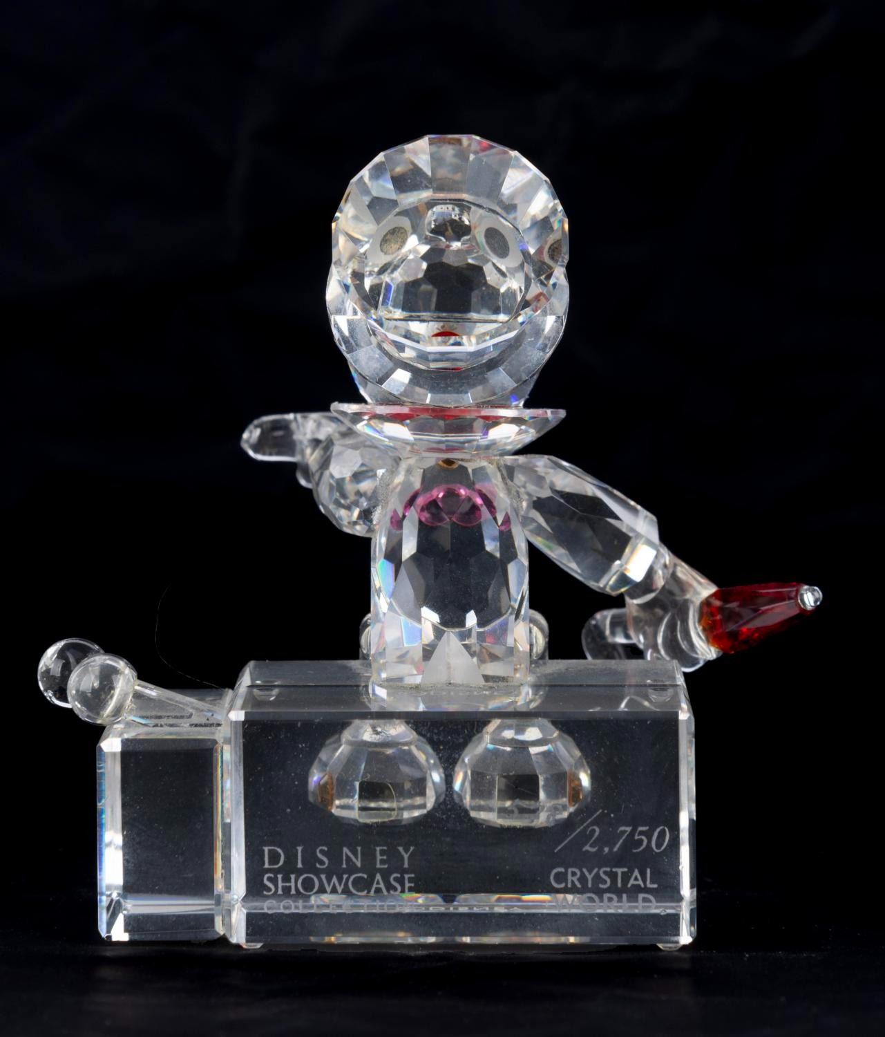 (Crystal World, 1990s-2000s) A Disney Showcase Collection Jiminy Cricket made of crystal, released in a limited edition and numbered 578/2750. Measuring 2.5” x 2.25” x 2.5” tall in its original 4.25” x 4.25” x 3.25” tall box, the crystal figure of the “Pinocchio” star is in fine condition.