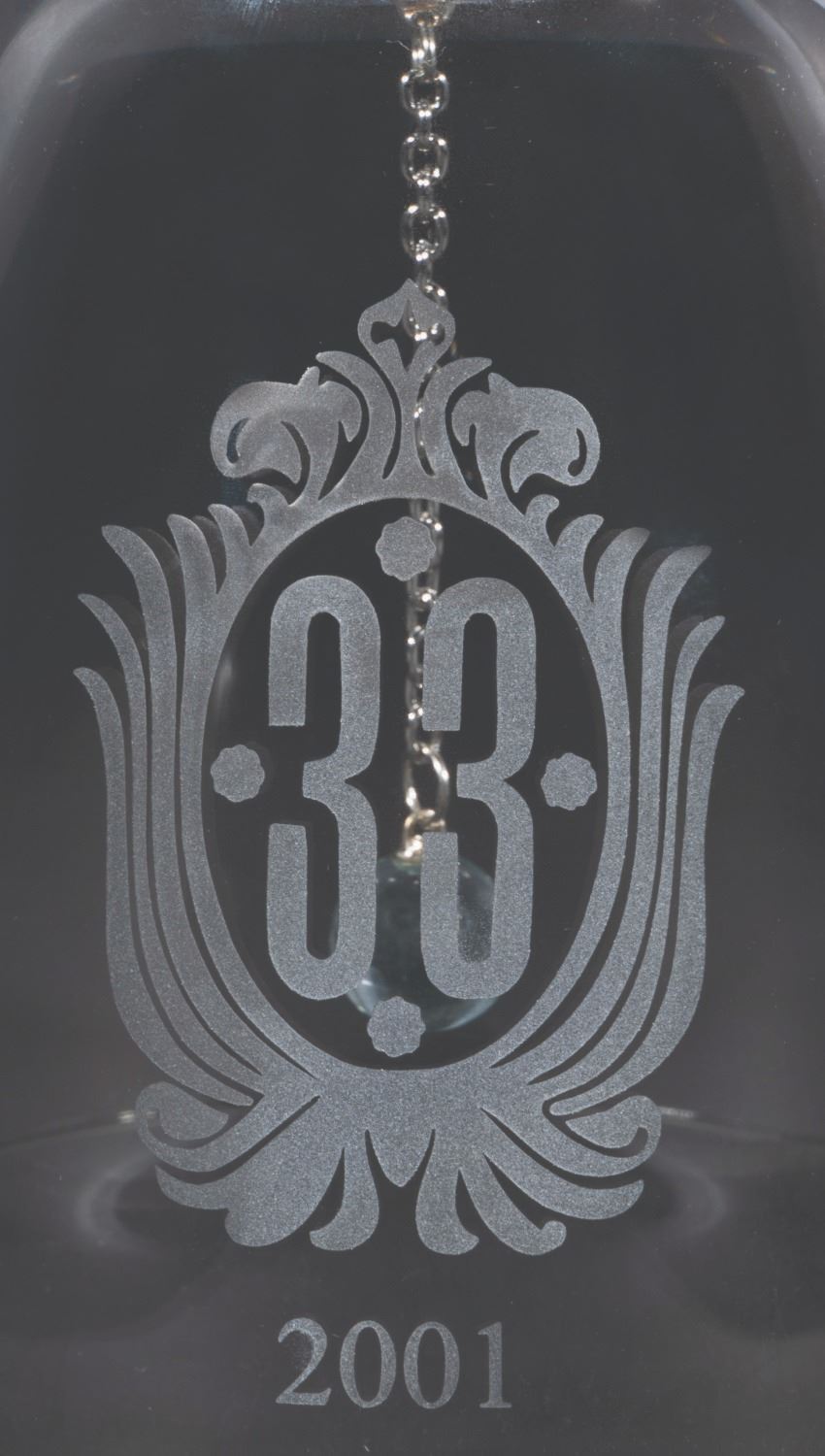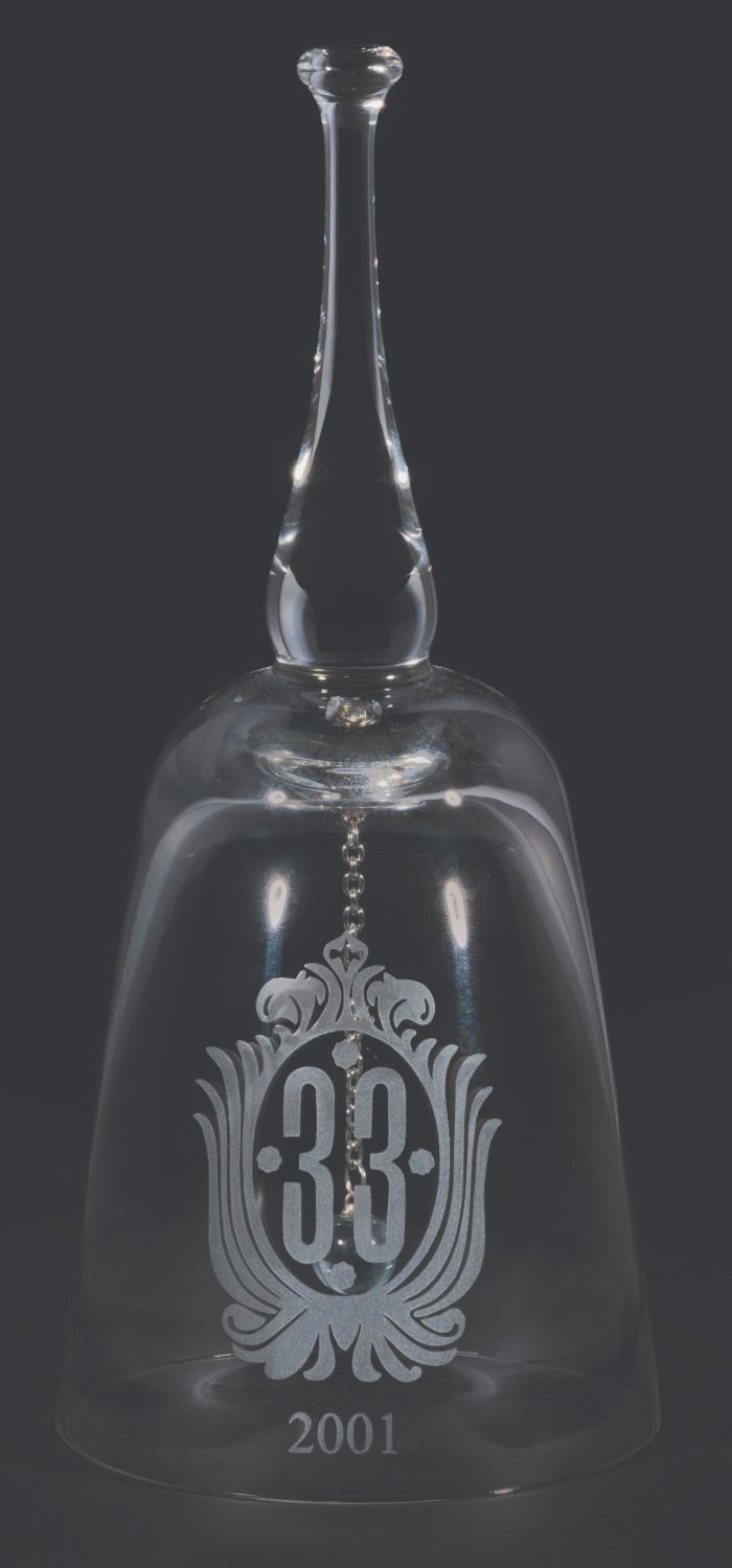 (2001) A custom-made crystal bell engraved with the Club 33 logo and the year “2001.” Measuring 8” tall and 3.5” in diameter, the bell is in fine condition.