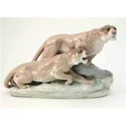 A Czechoslovakia Amphora group, of two lionesses with their kill (restored) 18.5ins £80-120