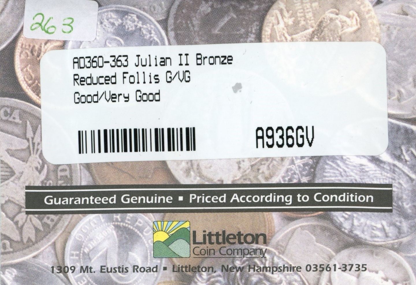 A.D 360-363 Julian II Bronze Reduced Follis of Ancient Rome