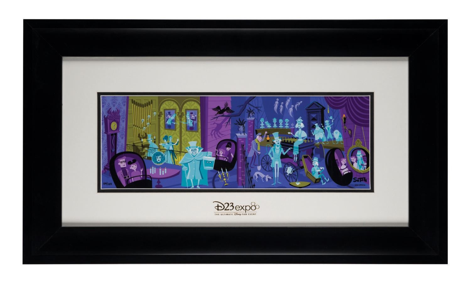 (Disney, 2019) A D23 Expo Haunted Mansion 50th "31 Ghosts" Deluxe Print signed by Shag. The large print has been signed by the artist - Josh "Shag" Agle and is numbered 44/100. The piece has an image size of 18.25"x6.25" within a D23 matte, and 20.5"x16.5"frame. In fine as-new condition.