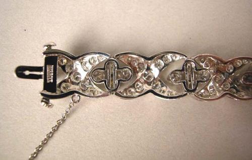 A DIAMOND AND PLATINUM BRACELET Comprising "X" style links set with 170 circular diamonds, total estimated weight apx. 9 carats, clarity VS1/VS2, color H-I, 7"l