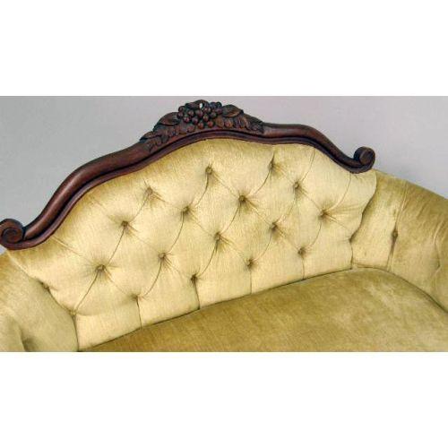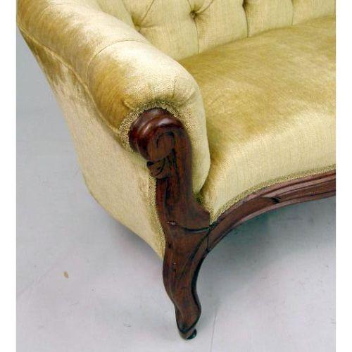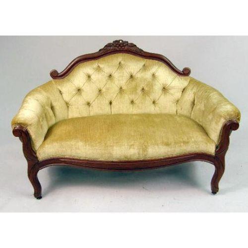 A DIMINUTIVE VICTORIAN CARVED MAHOGANY UPHOLSTERED LOVESEAT<BR><BR>Together with a velvet upholstered boudoir chair