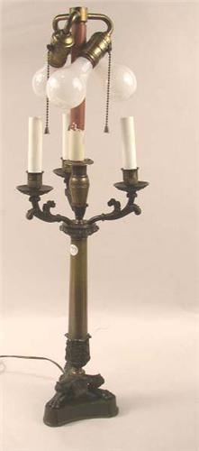 A DIRECTOIRE STYLE BRASS LAMP; 28"h
