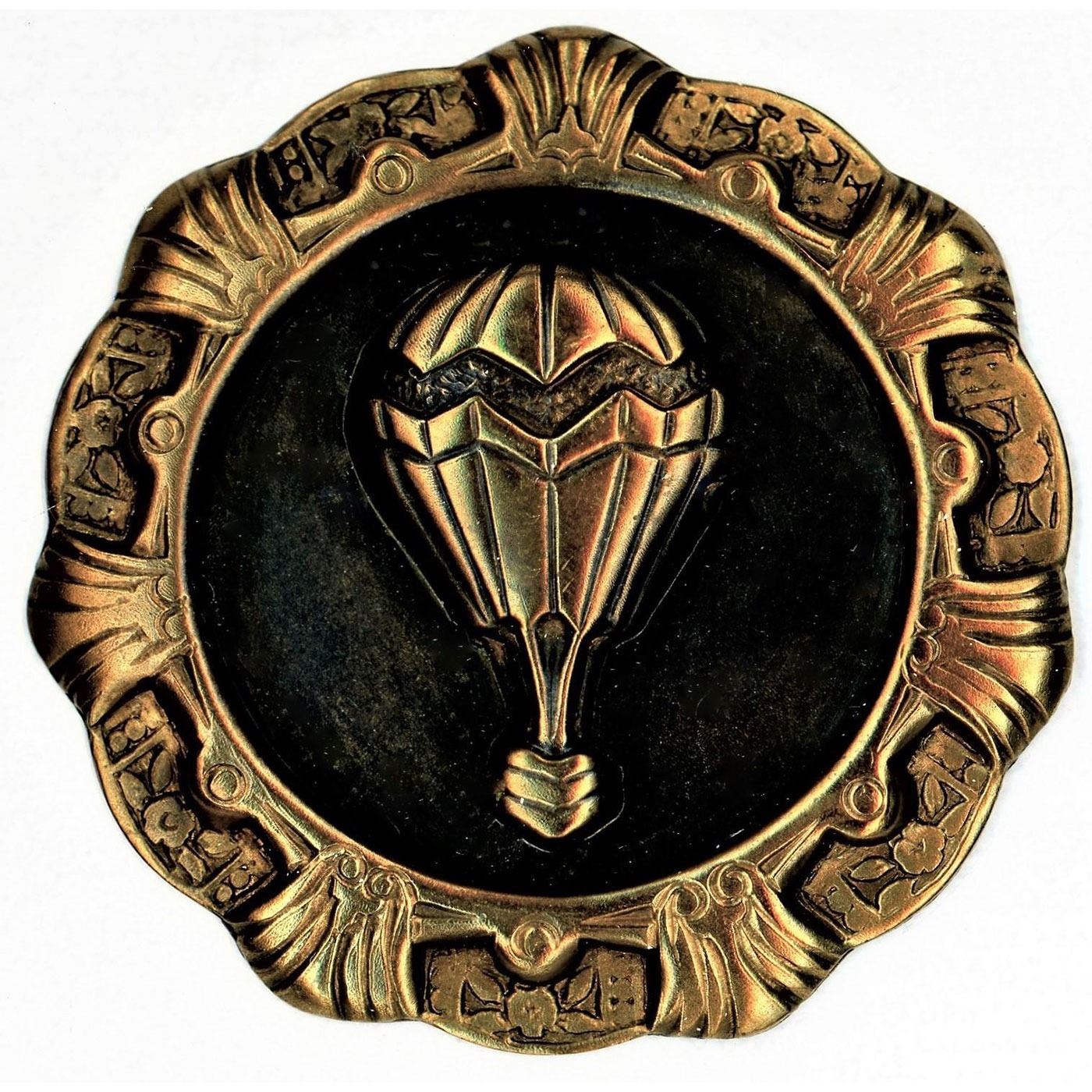 1 Large brass studio button by Faith Strobel. Faith Strobel's buttons have become quite desirable as they are so well done. This large Hot Air Balloon is no exception. Very detailed and signed FS.