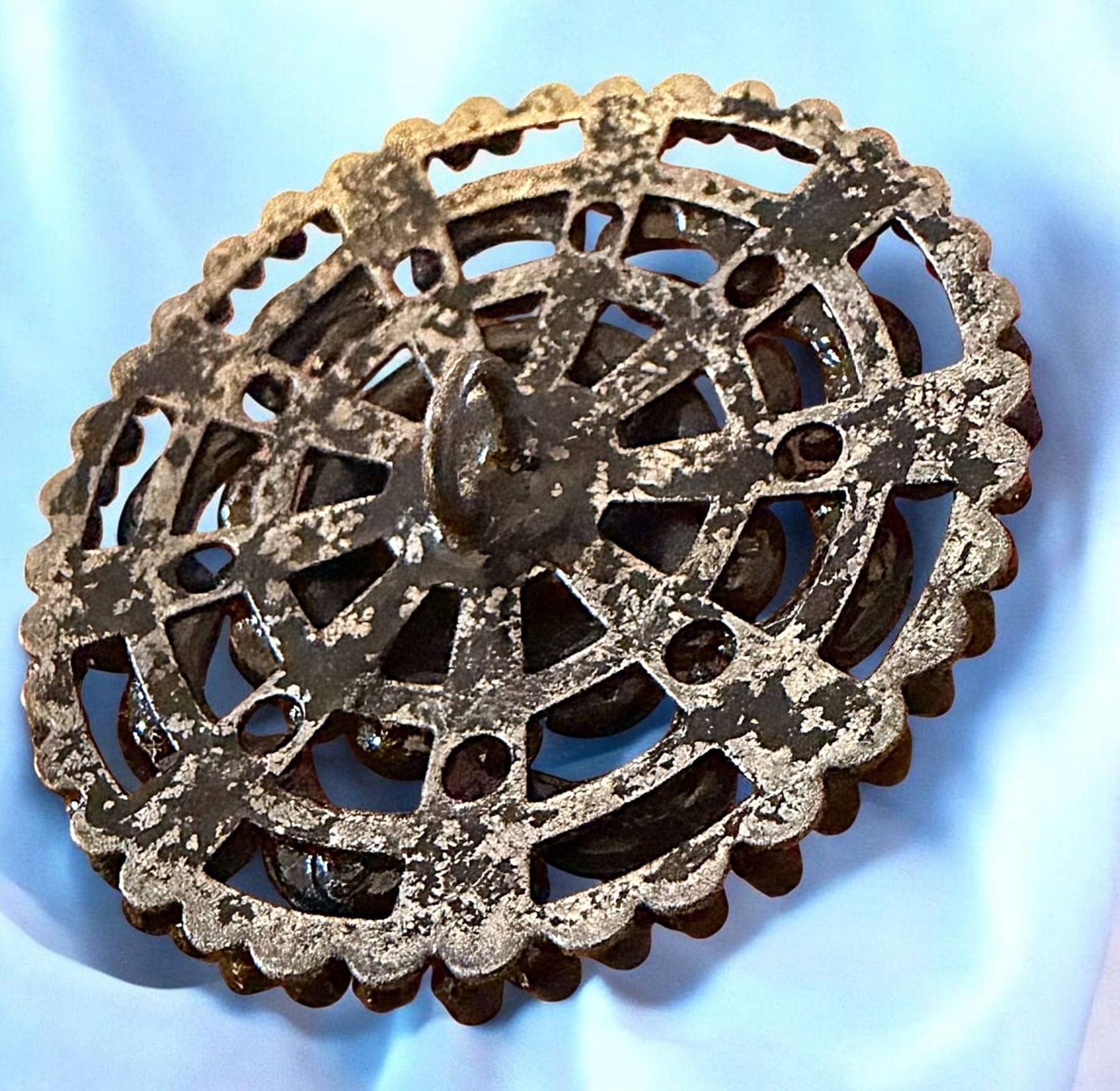 1 large 19th century "Passamentrie" glued and riveted example. These delicate and fine buttons used to be called "Passamentrie" work by button collectors, but many years ago that was revised to glued and riveted. Each shape and piece of black glass is glued and or riveted to the pierced metal base. Very often these buttons are found missing or have broken pieces. This example is in pristine condition, a somewhat rarity for these type buttons. This is a button and not a trim , as you can see by the thicker shank on the back.