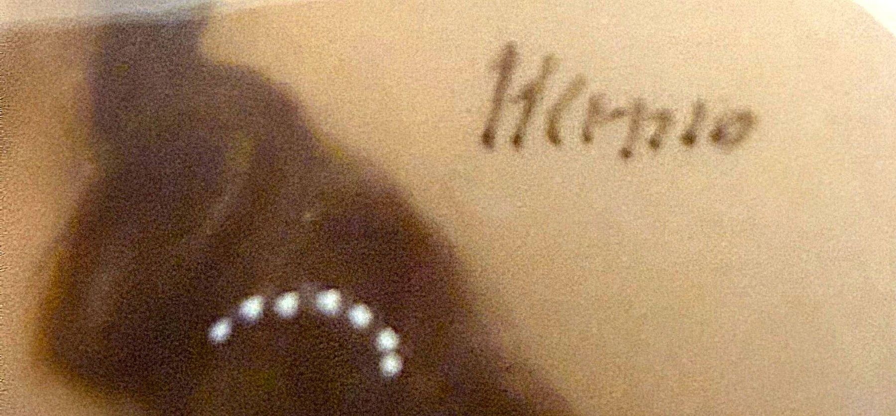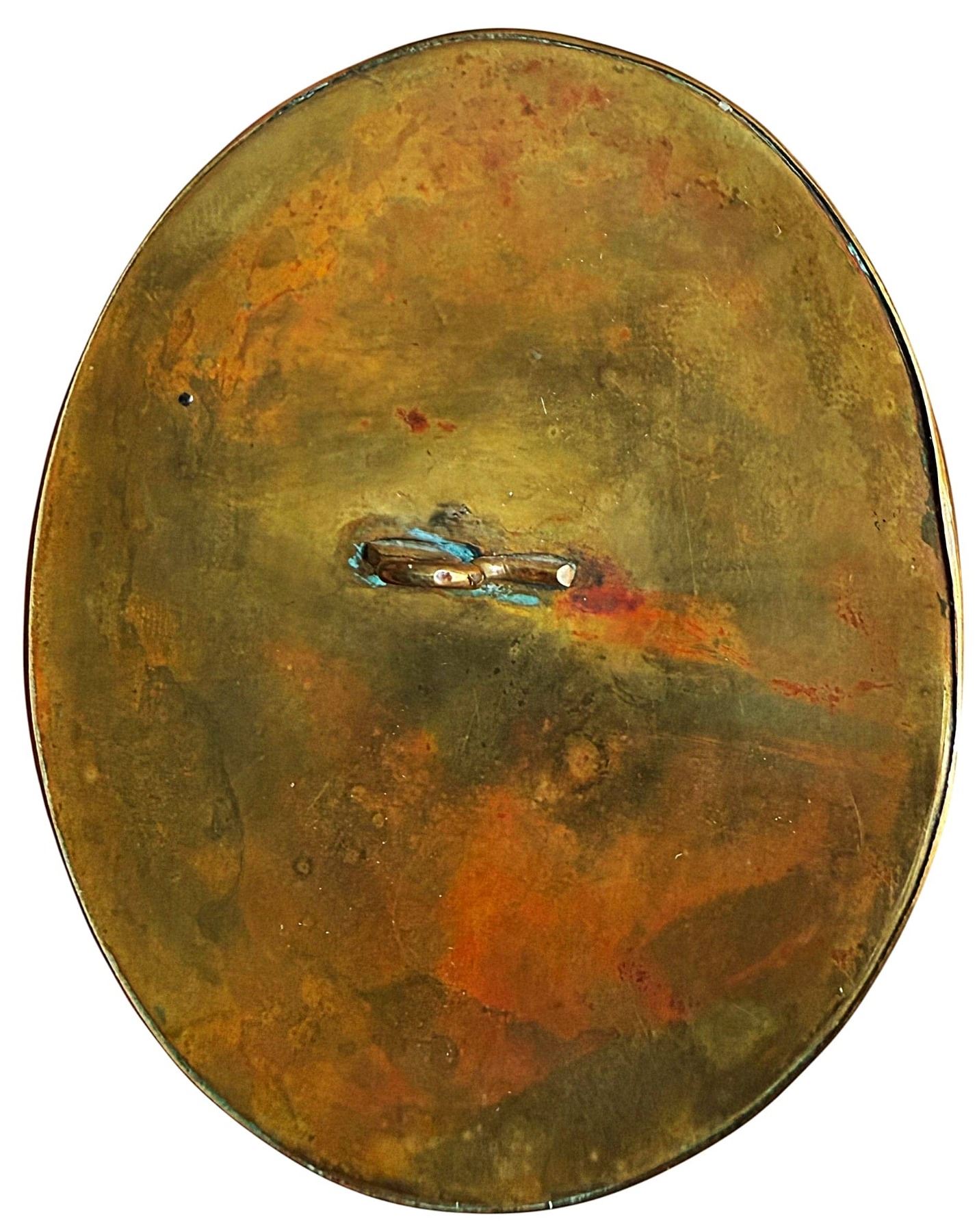 1 Ex-Large oval signed late 19th C. painting under glass of a lady. Here is a beautifully detailed and executed button of a women in a big headdress with feathers and big hair. The fine detail and colors used are pristine and unfaded and quite vibrant. The painting was hand done on natural material and set under glass. Notice it is artist signed.