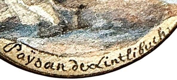 1 Large 18th C. watercolor on paper figural and cow example. This rare example with a cow is from a larger set that the consignor acquired. The figurals and designs were hand painted on paper in Switzerland rather than France and each example in the set is a different figural with a verbal in the bottom. They are each set under glass and mounted in metal. This COW example is certainly a rarity as cows were not readily imaged in this time period on buttons. The detail is also incredible. Notice the cow looking back at the man milking him, I wonder what the cows thought was as he is looking at the owner in a interesting way don't you think, Great button.