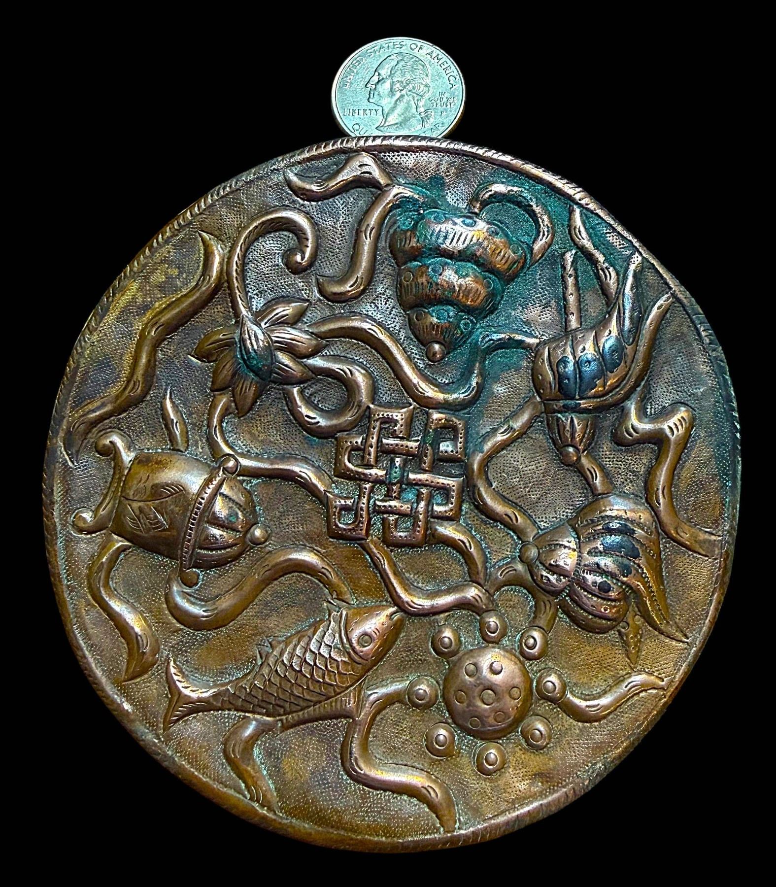 1 Extra large approx. 4" copper Chinese Sea Creatures button.