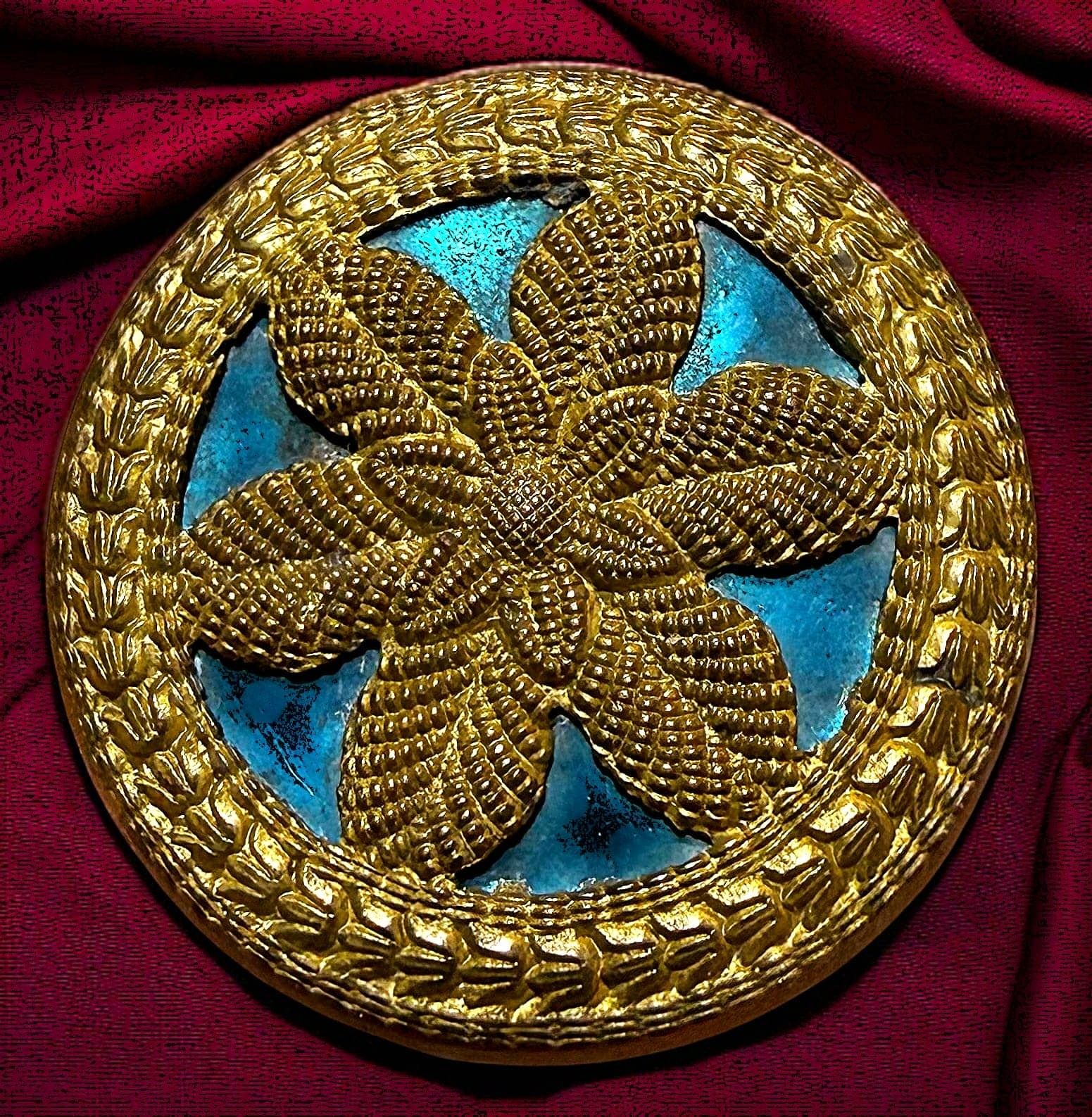 1 Medium 18th century repousse metal with steel liner.