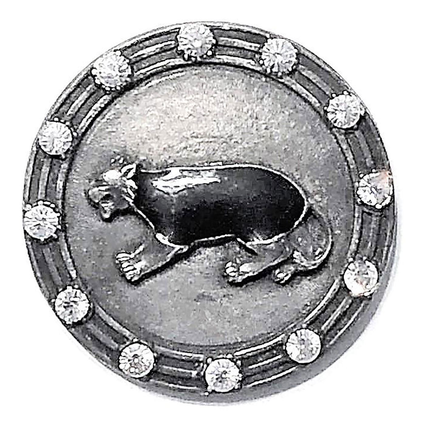 1 Large 1930's French White metal animal button. This cool button has a paste border surrounding the black enameled wildcat. French white metal buttons were produced in France and Paris and have become quite desirable among collectors as they were to Alethe Allen of Florida.