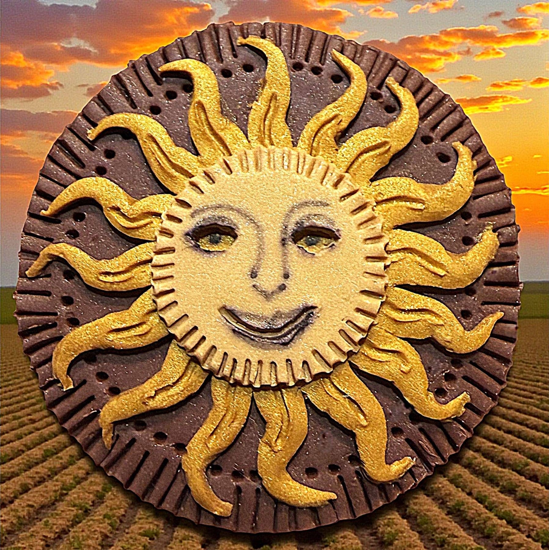 1 Large 20th century example by Nikki Deal. Here is a beautiful example made by Nikki Deal of Missouri. This bright and colorful example of a Sun face came directly out of the artists personal collection and although its unsigned we know who made it for that reason. Nikki was a talented artist in making these cool examples. Once we have sold the last of her handmade buttons there will be no more so don't pass it up.