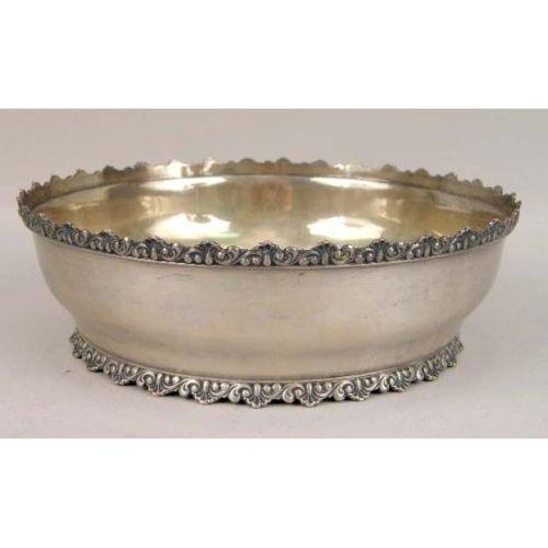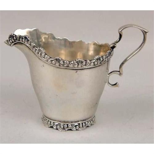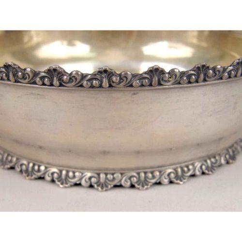 A DOMINICK & HAFF STERLING SILVER CIRCULAR BOWL, OPEN SUGAR BOWL AND CREAM JUG<BR><BR>Retailed by Tilden Thurber, bowl #840, sugar and cream #614, with scroll and shell borders, bowl, 7-1/4"diameter, total weight apx. 15 T.O.