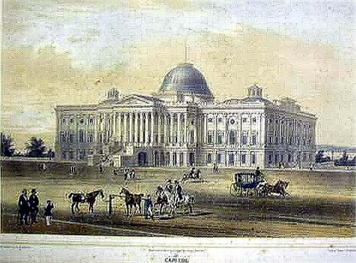 A DRAWING OF A STREET SCENE; Signed LR, Iris Brooke, 9"h x 12"w Together with a print, "Capital", losses 8 1/2"h x 12"w