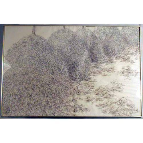 A DRAWING<BR><BR>Depicting haystacks, bears signature and date lr (Harriet) Feigenbaum `72 (American, b. 1939). 26 1/2"h x 40"w.