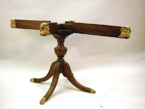 A DUNCAN PHYFE STYLE MAHOGANY TABLE BASE WITH GLASS TOP;